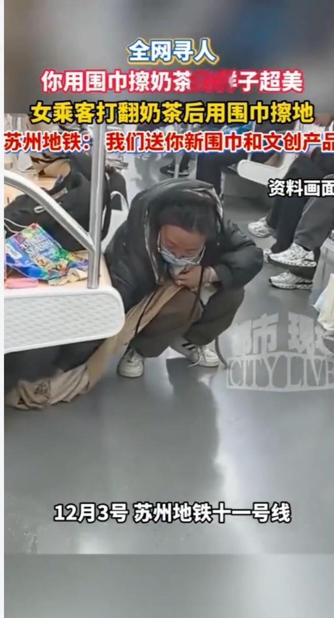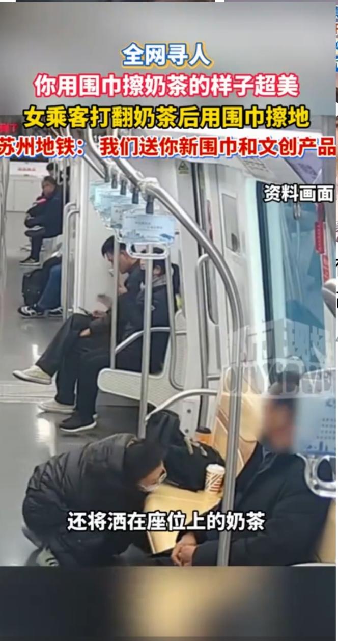 昆山地铁暖心一幕!女子解围巾擦奶茶渍,文明微光点亮城市 江苏昆山,12月4日的地铁11号线上,一杯意外打翻的奶茶,照见了人性最温暖的底色。当褐色的奶茶顺着座位流淌,黏糊糊的液体浸染地面,几颗珍珠滚向角落时,周围乘客下意识避让,而当事人——一位年轻女子的反应,让整个车厢都漾起暖意。 她没有丝毫犹豫,第一时间转头向周围乘客连连致歉:“不好意思,给大家添麻烦了!”随即蹲下身,迅速掏出包里的纸巾擦拭。可奶茶黏性十足,座位缝隙里的污渍难以清理,几张纸巾很快用尽,痕迹仍清晰可见。让人动容的是,她毫不犹豫解下颈间的浅色围巾,铺在污渍上细细擦拭,腰弯成90度,连角落的珍珠都一一捡起装进垃圾袋,直到座位和地面恢复如初,才收拾好脏污的围巾悄然下车。 这一幕被同车乘客拍下上传网络,迅速引爆热议,播放量破500万。网友纷纷留言:“这不是作秀,是刻在骨子里的教养”“细节见人品,这才是文明该有的样子”。正如古人所言“勿以善小而为之”,这位女子用行动诠释了“君子诚之为贵”的真谛。12月5日,苏州地铁官方确认情况后公开致谢,发起全网寻人,准备赠送新围巾和含江南园林主题卡的文创大礼包,用城市的温度回应公民的美德。 地铁作为城市流动的窗口,保洁人员每晚要完成多重清洁流程,为乘客守护洁净环境。这位女子的善举,恰是公共文明的生动注脚——文明从不是宏大的口号,而是“不给他人添麻烦”的自觉,是举手投足间的体谅。“礼貌是我们共处的金钥匙”,愿每个行走在公共场所的人,都能拾起这份善意,让点滴文明汇聚成河,让城市因我们的每一个小举动更加美好。你在公共场所遇到过这样的暖心瞬间吗?欢迎分享你的经历!地铁暖心瞬间 苏州暖心瞬间 地铁暖心一角 擦地铁女孩