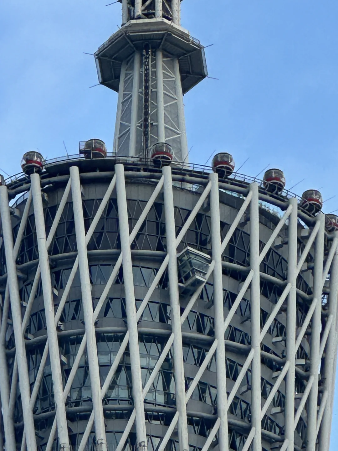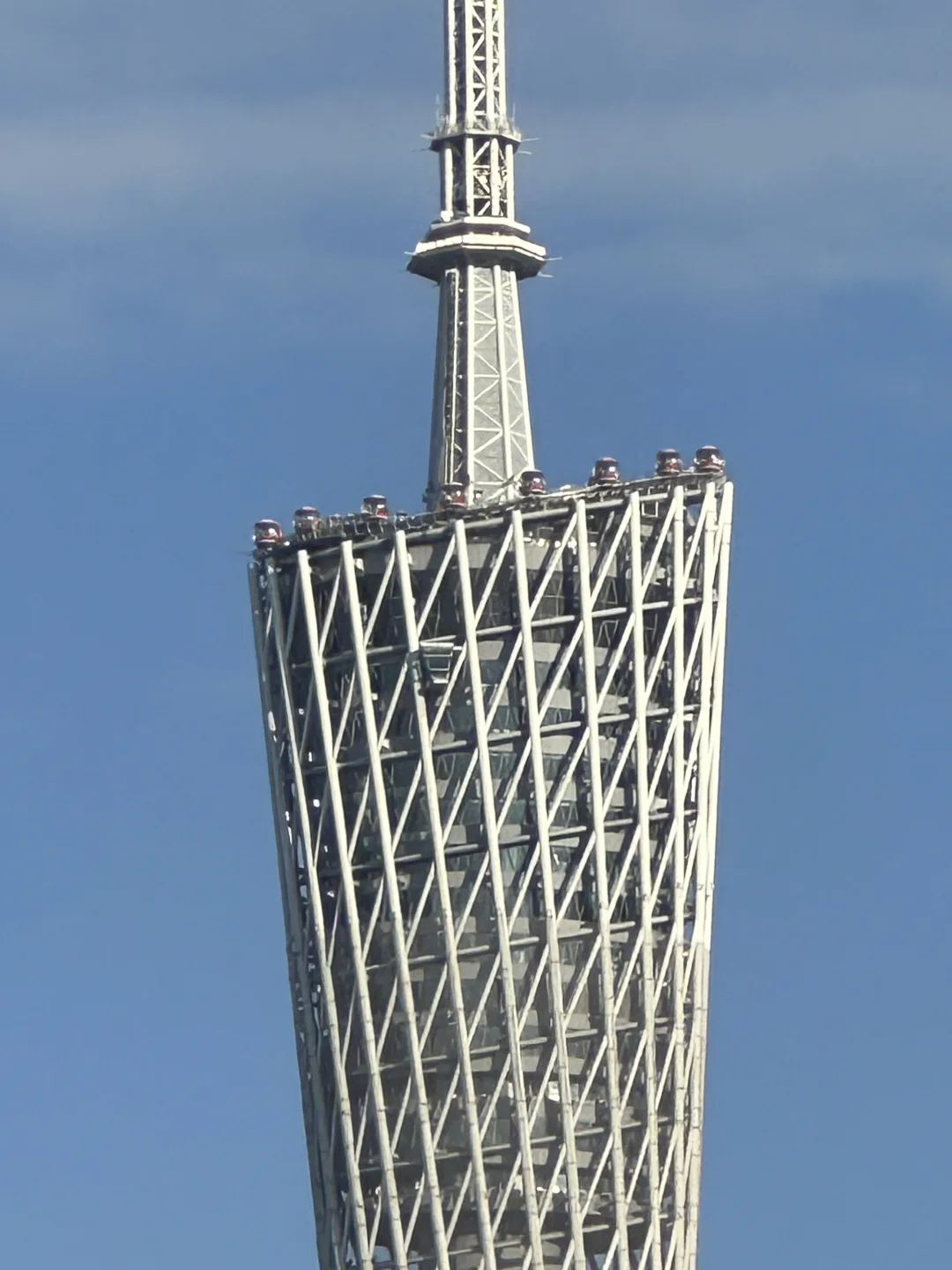 海心沙江边真的是长焦天堂!站在栏杆旁,打开苹果14 Pro的3x变焦,广州塔瞬间“凑近”眼前,塔尖的天线、塔身的纹路清晰到离谱,像把整个广州塔“拎”到面前一样。