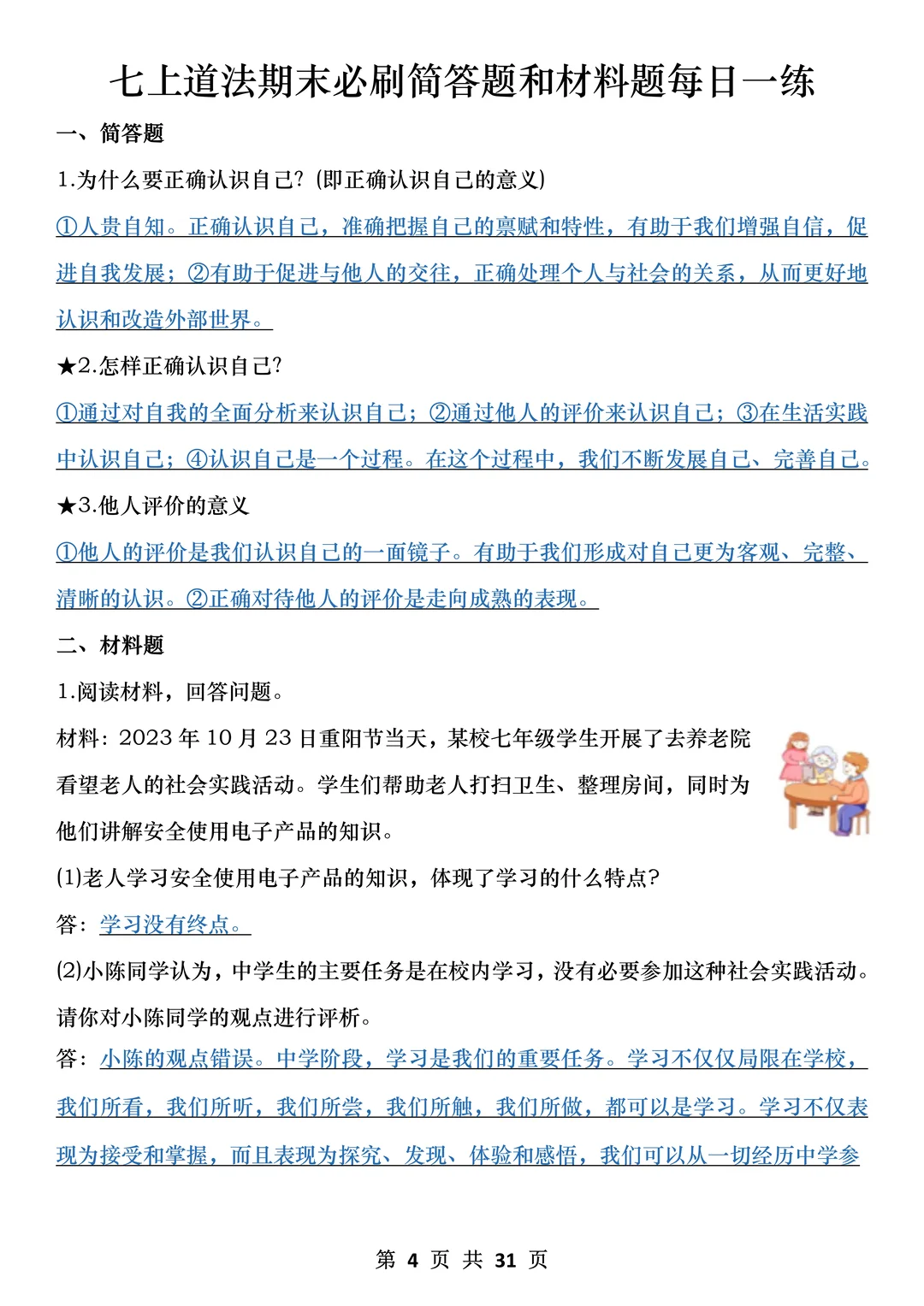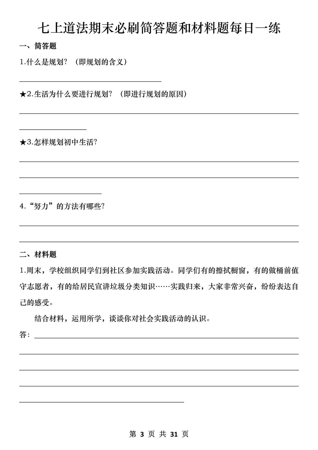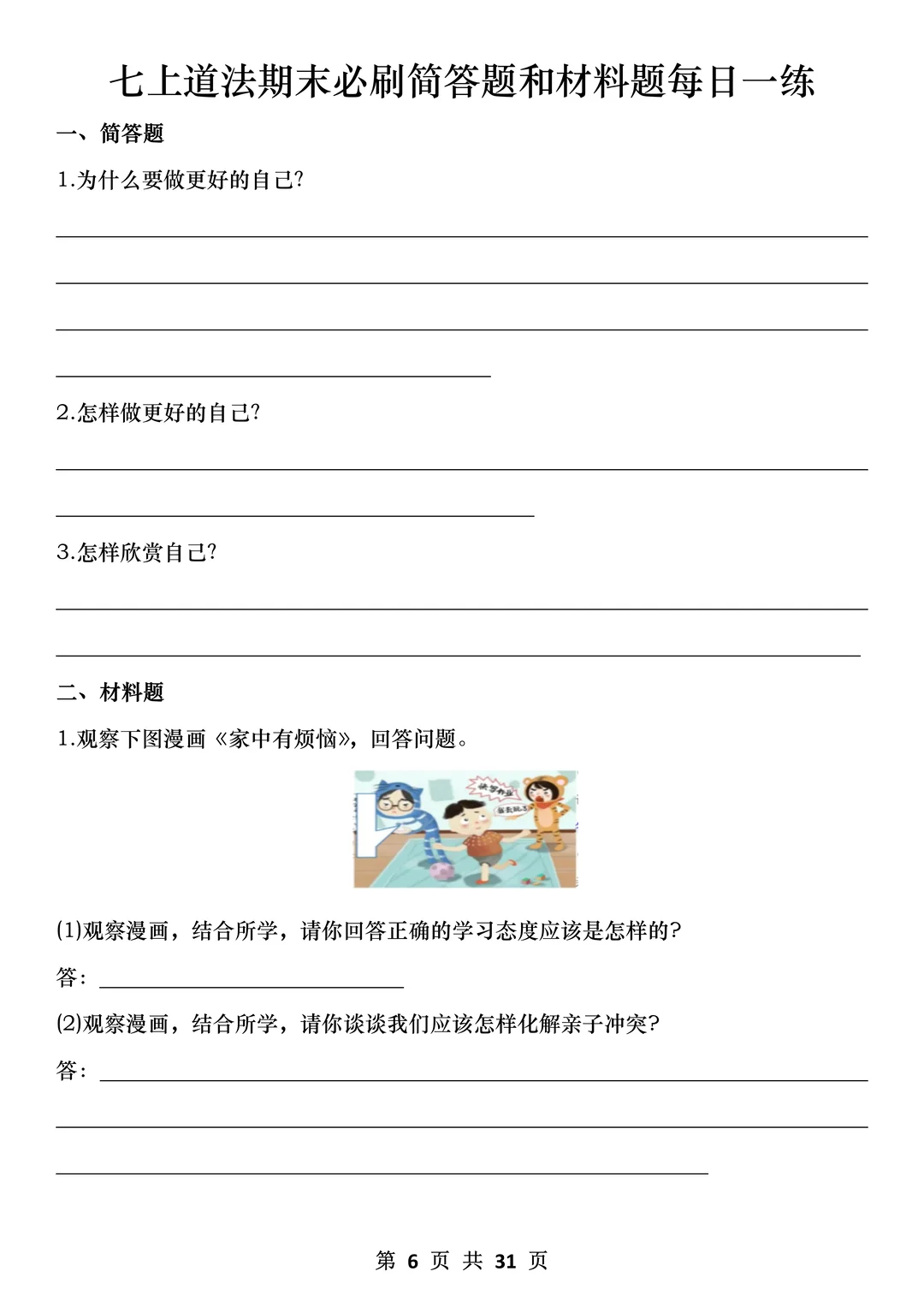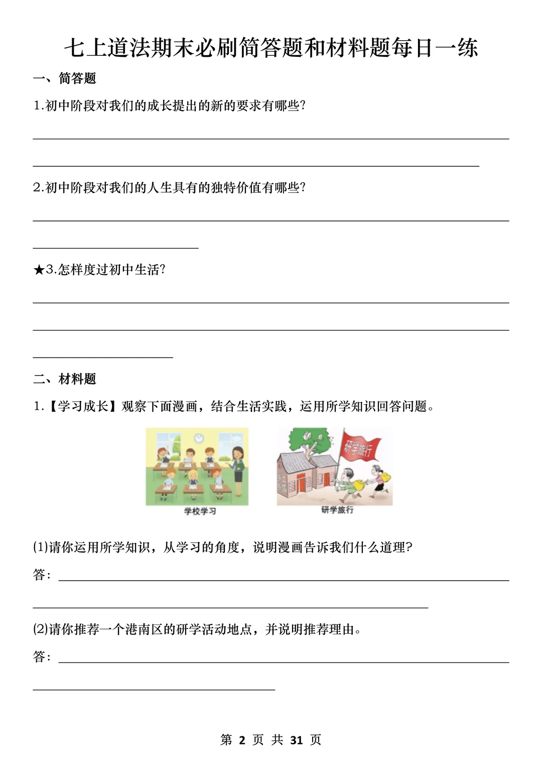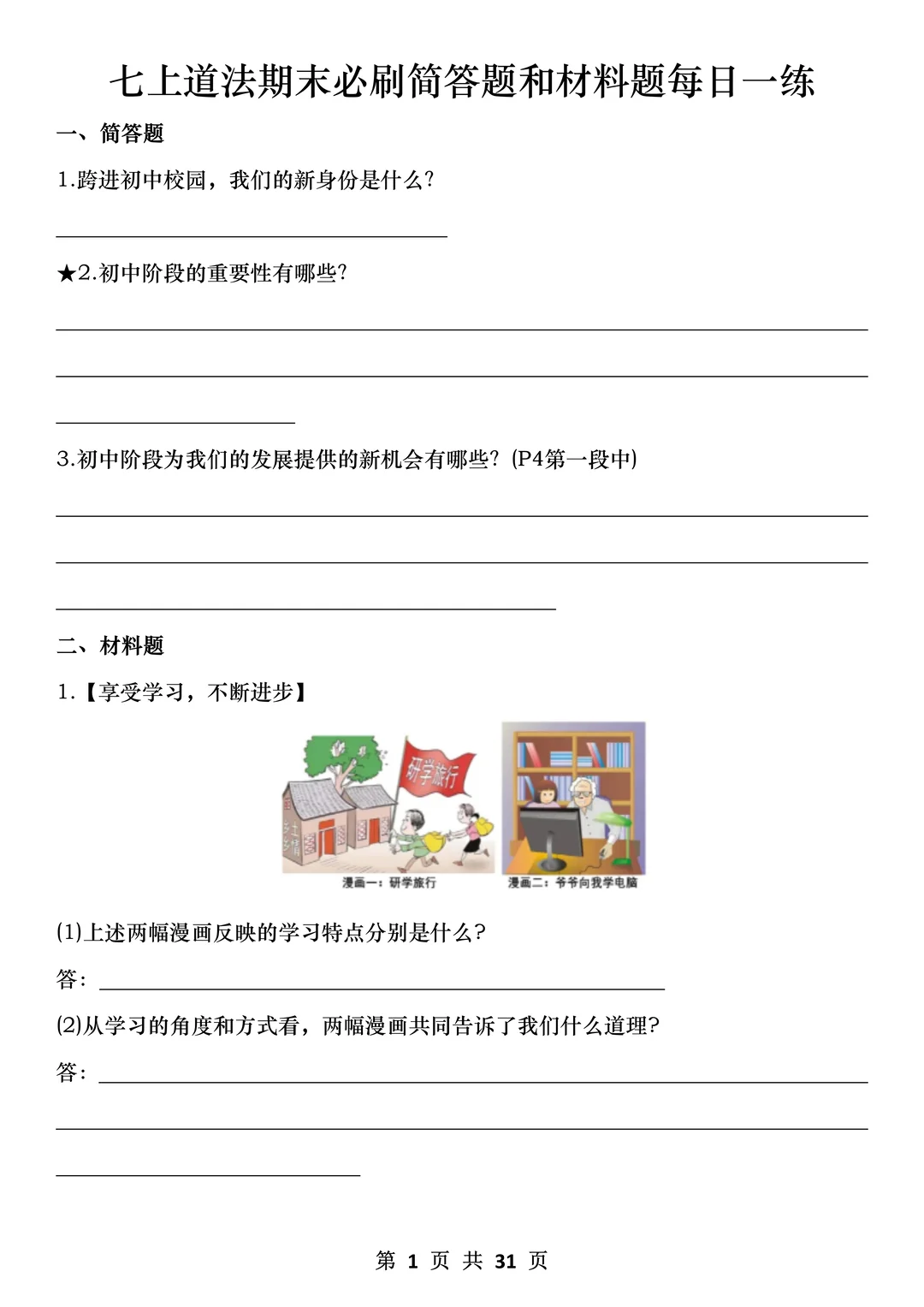 七上道法七年级上册道法初一道法每日一练提高孩子学习成绩 必考考点 辣妈育儿经 期末复习期末考试学霸秘籍
