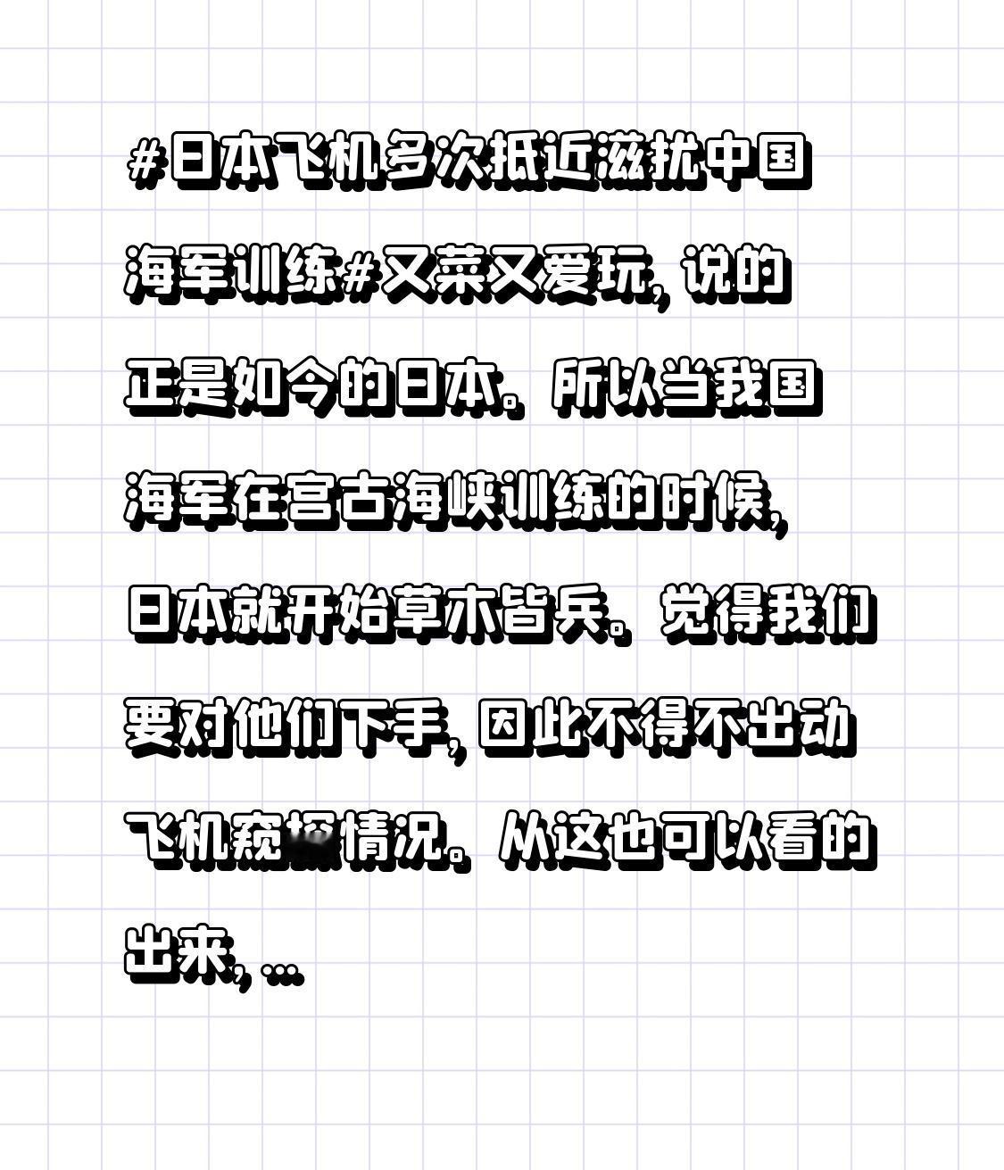 所以当我国海军在宫古海峡训练的时候,日本就开始草木皆兵。觉得我们要对他们下手,因此不得不出动飞机窥探情况。 从这也可以看的出来,对于高市早苗的挑衅。日本还是很心虚的,不然他们又怎么会反应如此激烈呢?如何看待日本强化太空军事能力 日本在琉球部署电子战部队有何意图 日本军事扩张会带来哪些后果 日本社会右倾化的原因有哪些