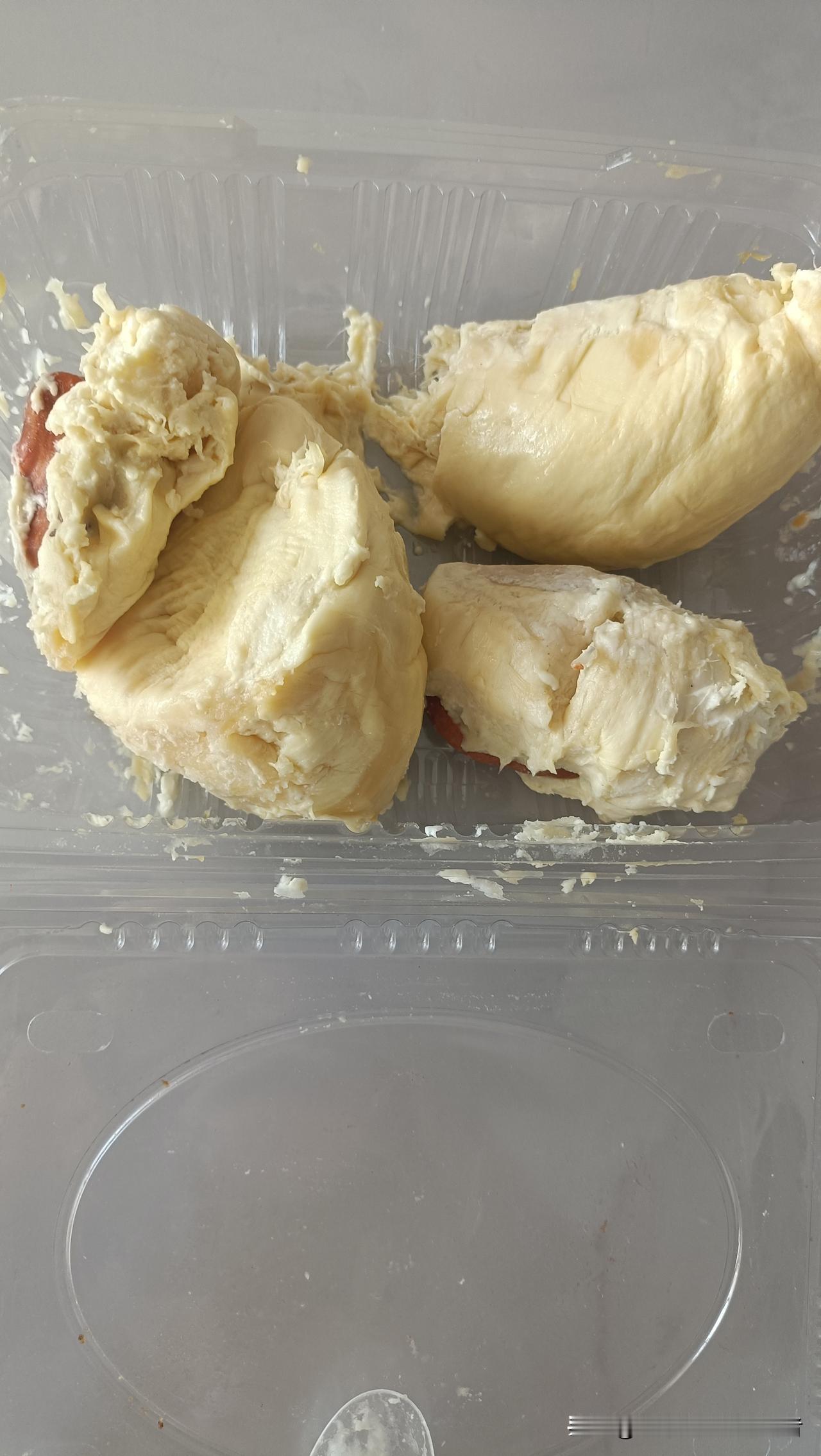 今天逛超市一眼就瞅中个圆滚滚的榴莲!浑身带刺还沉甸甸的,老板说熟得正正好,果断抱回家。 刚切开那股浓郁的香味就飘满客厅,金黄的果肉饱满又厚实,轻轻一掰就下来了。塞进嘴里的瞬间,软糯得像云朵,甜丝丝的还带着点自然的奶香,一点不腻人! 一边吃一边忍不住跺脚,核还特别小,每一口都是实打实的满足。本来还担心味道太冲,结果全家都抢着吃,一会儿就光盘了。果然,爱吃榴莲的人永远懂这份快乐,下次必须再安排上!