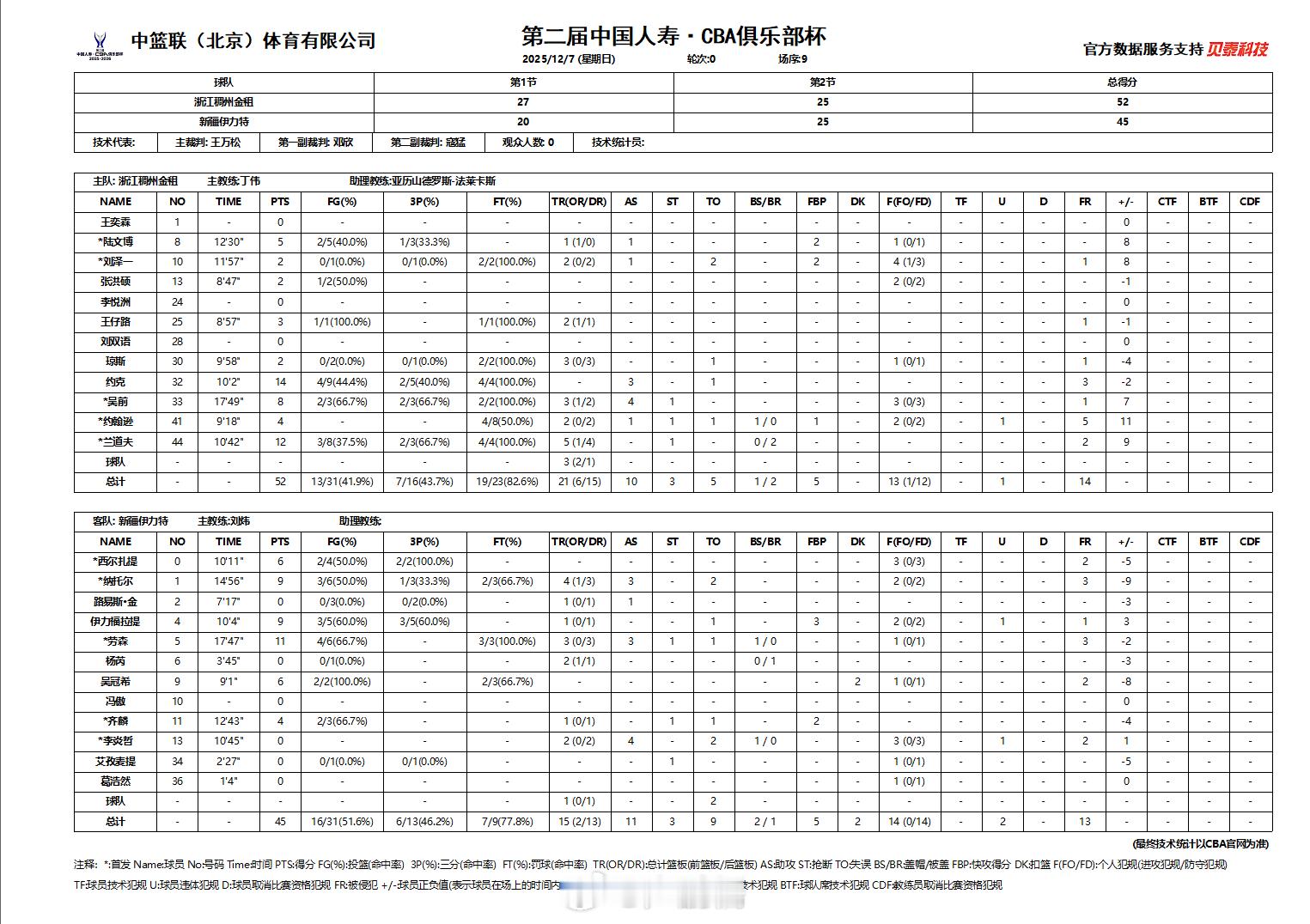 得分52-45,三分16-13,罚球23-9。三分算是抗住了压力,但是罚球没抗住cba俱乐部杯新疆男篮小卢篮球世界