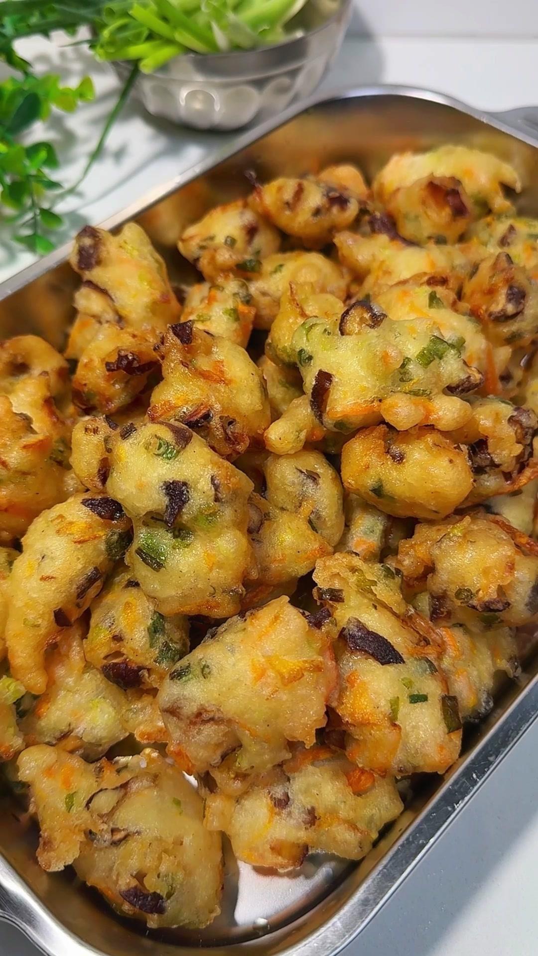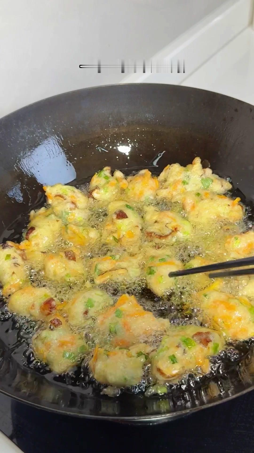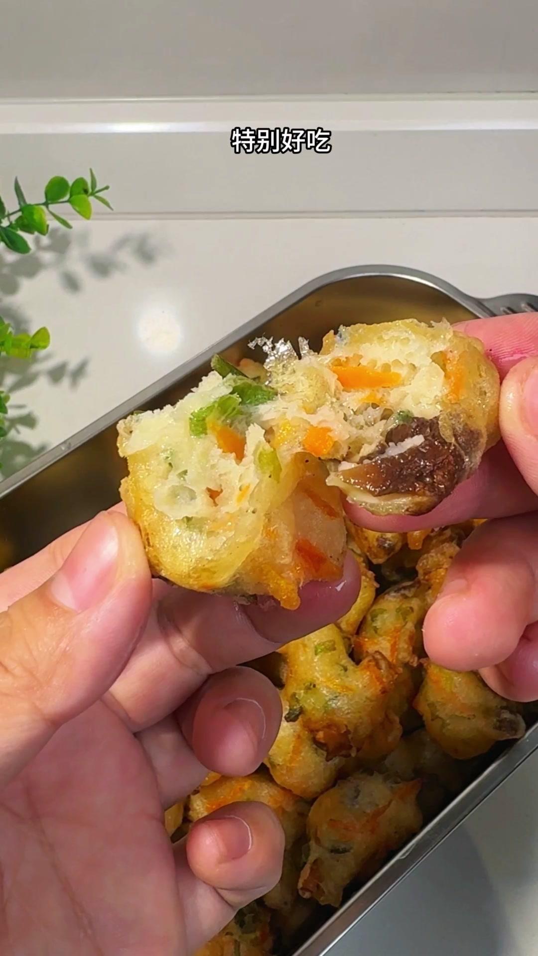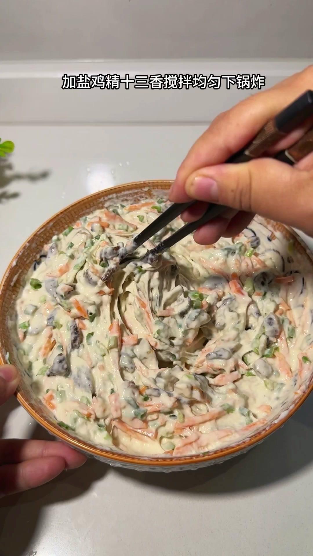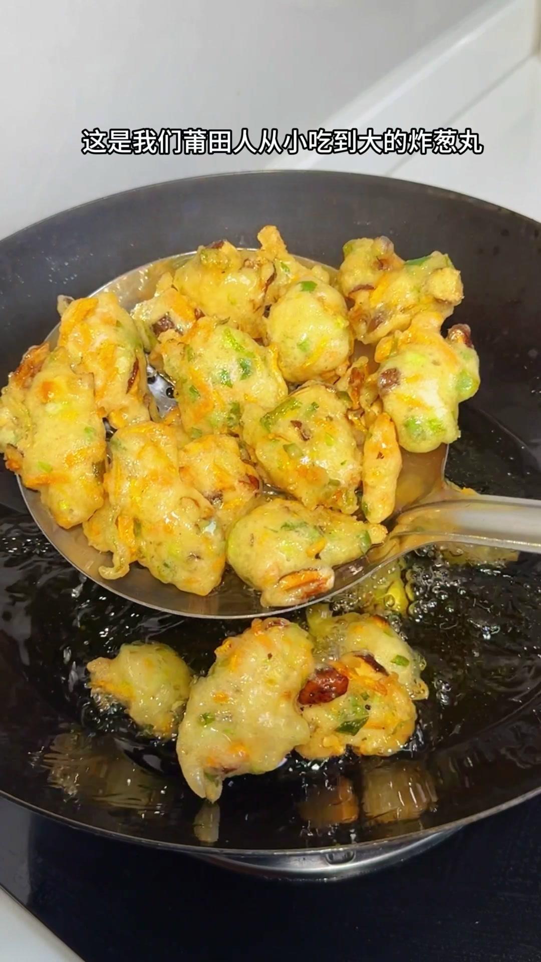 莆田炸葱丸复刻成功!🍳毕业党/手残党看过来!5块钱就能复刻莆田街边特色炸葱丸,外酥里糯咸香适口,一口回到小时候~ 1️⃣准备食材:面粉300克+糯米粉100克+3克酵母粉+400毫升清水,搅拌成糊状后盖保鲜膜醒发至两倍大,醒好的面糊呈蜂窝状,用筷子排气备用~ 2️⃣处理配料:香菇提前泡发剪小块,胡萝卜切粒,葱切花,所有配料和盐、鸡精、十三香一起加入面糊中,搅拌均匀~ 3️⃣炸制技巧:油温五六成热时,用勺子一勺勺下锅,中火炸至两面金黄捞出,外酥里嫩的口感绝了,比外卖还香!