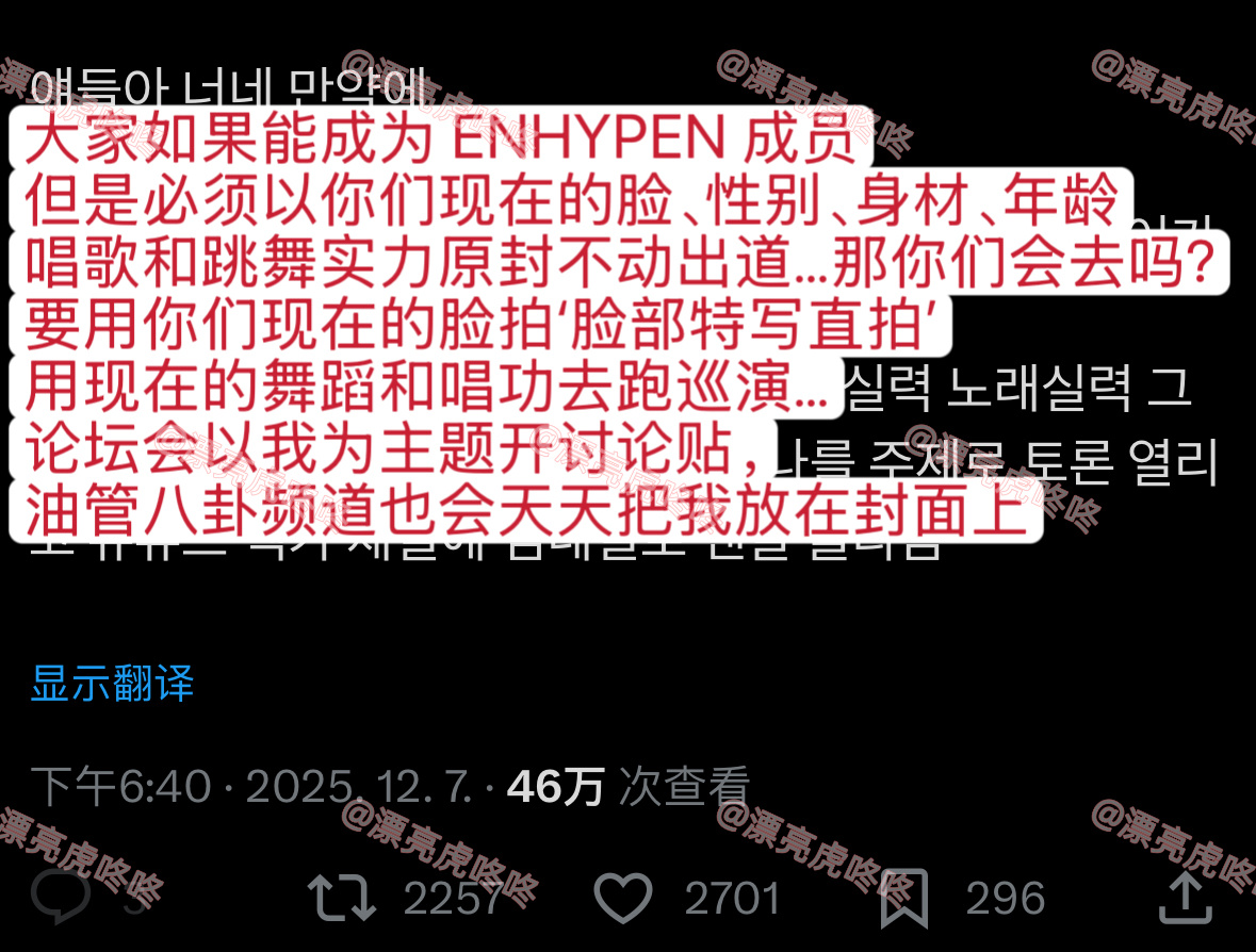 【twi】“如果能成为 ENHYPEN 成员,但是必须以你们现在的脸、性别、身材、年龄、唱歌和跳舞实力原封不动出道…那你们会去吗?”