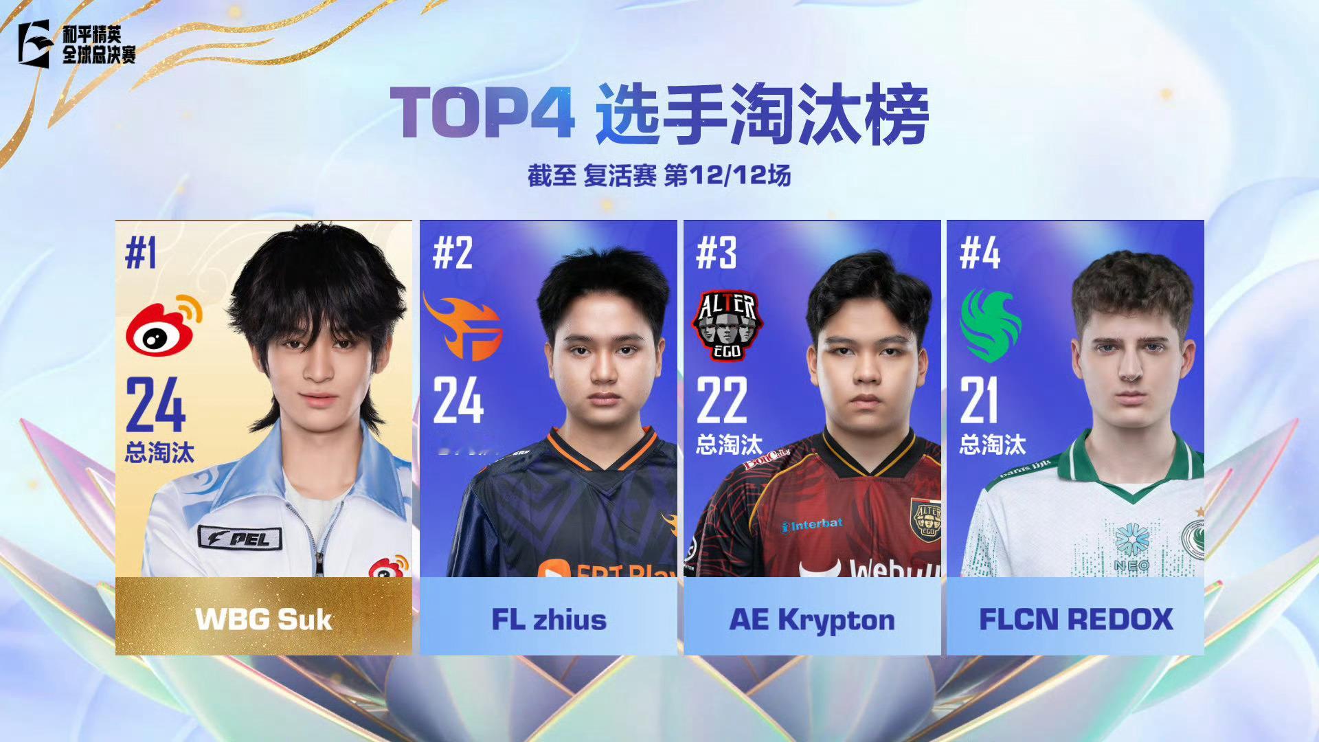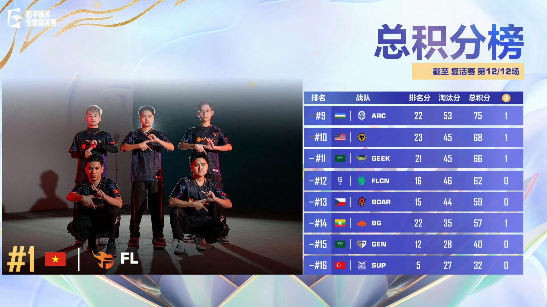 2025和平精英全球总决赛 2025PEL 【2025和平精英全球总决赛】复活赛 Day2 第六场 获胜队伍:9zG战队MVP:9zG·Colegoat截至本场总积分榜第—名:FL战队第二名:AE战队第三名:第四名:第五名:IC战队 截至本场淘汰榜第—名:第二名:FL·zhius 第三名:AE·Krypton 第四名:FLCN·REDOX