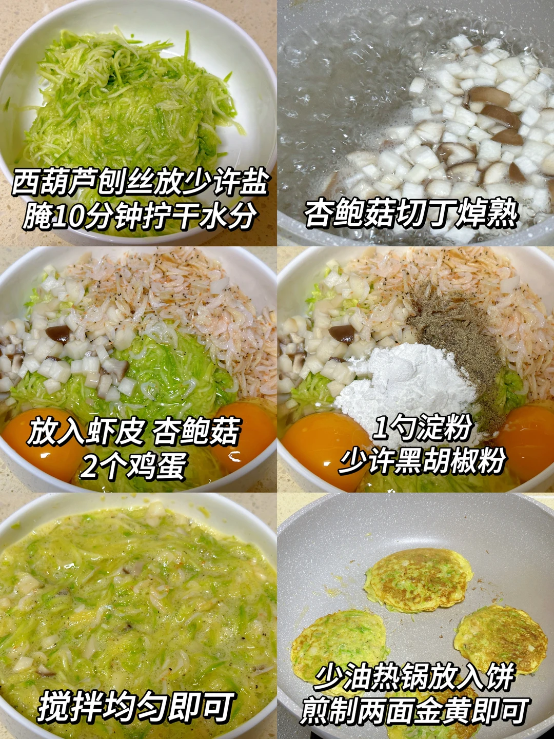 [捂脸R]年底最近真的太忙了,差点就断更了,姐妹们久等了[皱眉R],今天看冰箱只剩下西葫芦、杏鲍菇、鸡蛋了,那就做一份西葫芦虾皮鸡蛋饼,低卡西葫芦虾皮鸡蛋饼真的泰香了,外焦里嫩,而且好吃又掉秤,饱腹还强,一个饼才20大卡,一大份才200大卡,[暗中观察R]减脂期的姐妹们可以放心炫~ [种草R]食材:西葫芦、鸡蛋(2~3人份) [种草R]做法:如图所示~ [斜眼R]更多的减脂餐在往期笔记~