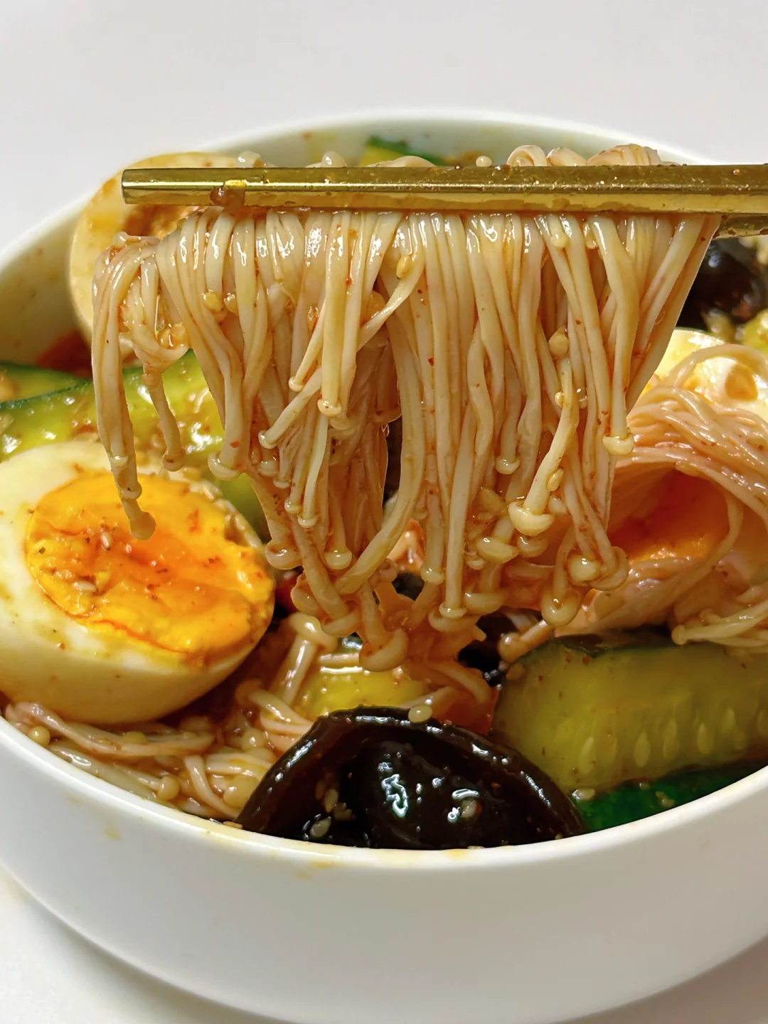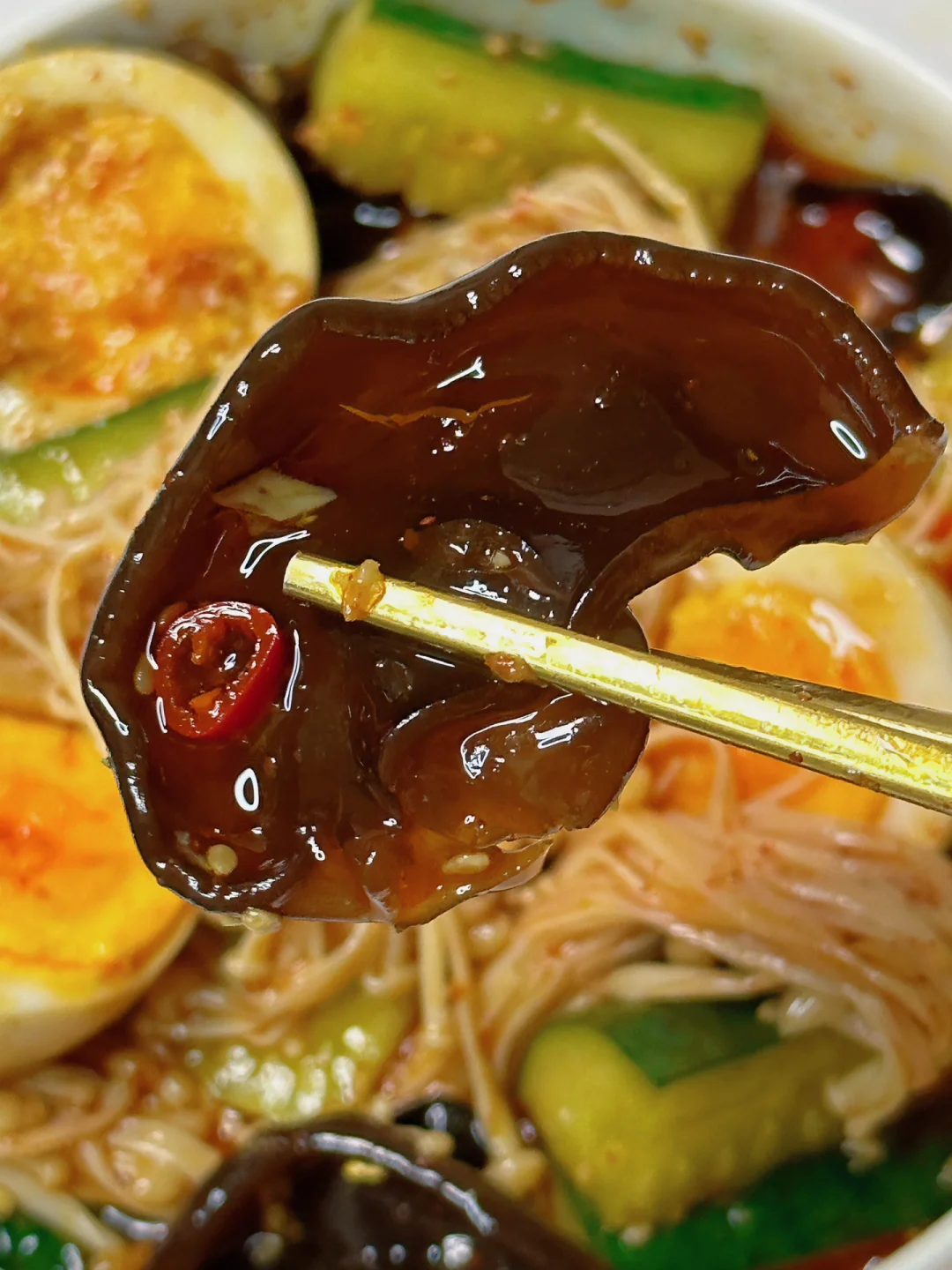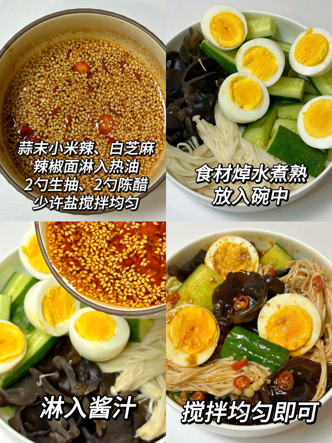 分享巨好吃的凉拌黄瓜木耳金针菇鸡蛋,巨好吃!香辣入味,青瓜木耳清脆爽口!满满一大盘才200多大卡,饱腹感强,[哇R]惊艳到我了!好吃到不行,还掉秤~吃起来酸辣过瘾,一大盘饱腹感满满!吃撑不到300大卡,[暗中观察R]做法简单…姐们们快安排起来~ [种草R]做法:如图所示 [种草R]酱汁:碗中放入蒜末、小米辣、辣椒粉➕1勺白芝麻,淋上热油(橄榄油)➕2勺生抽➕2勺陈醋(或者香醋)➕少许盐搅拌均匀即可 [向右R]更多的减脂餐在往期笔记!