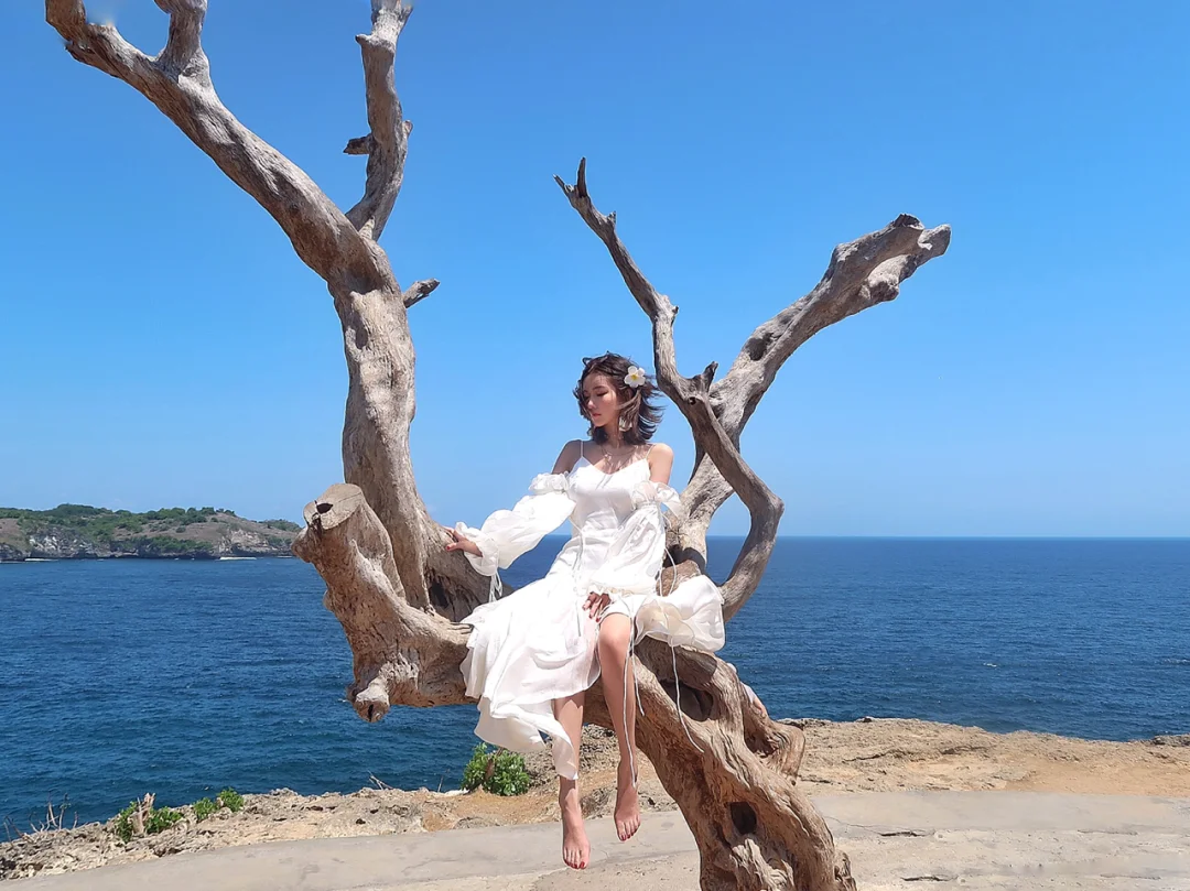 👗考虑到海岛风很大,所以穿了条白色丝质连衣裙,建议宝宝们穿那种很飘逸的裙子,拍出来会特别仙!岛上巨晒无比!一定要注意防晒!我已经黑了好几个度了[哭惹R][哭惹R][哭惹R]我还带了套比基尼,以防去岛上要游泳。