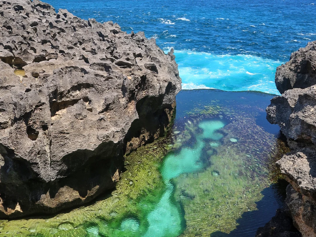 接下来去的天神浴池[自定义]Angel's Billabong图56和破碎沙滩[自定义]Broken Beach图789,两个是连在一起的。去的时候天神浴池也就只能坐在悬崖上看看,走下去的路被封了,好羡慕之前可以下去在那绿色纯天然池子里穿比基尼游泳的宝宝们[哭惹R]不知道以后什么时候会再开。之后再继续走就到破碎沙滩了,一路有好几个拍照点。
