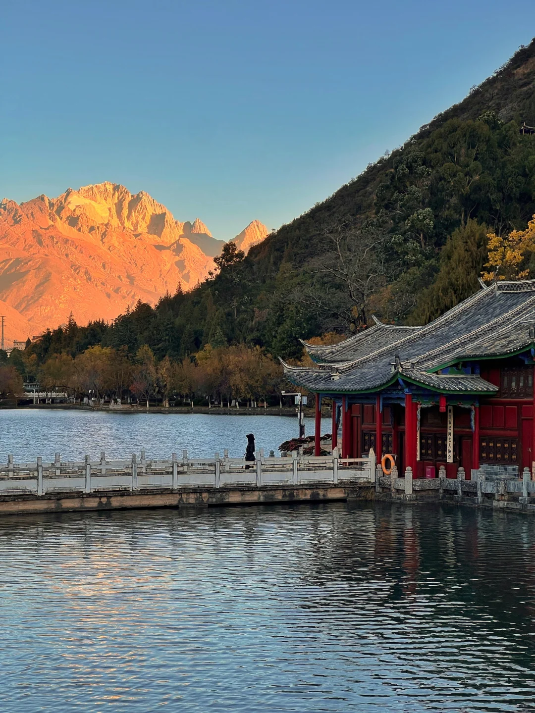 进了大门一直往前走5分钟就能看见湖中见的亭子