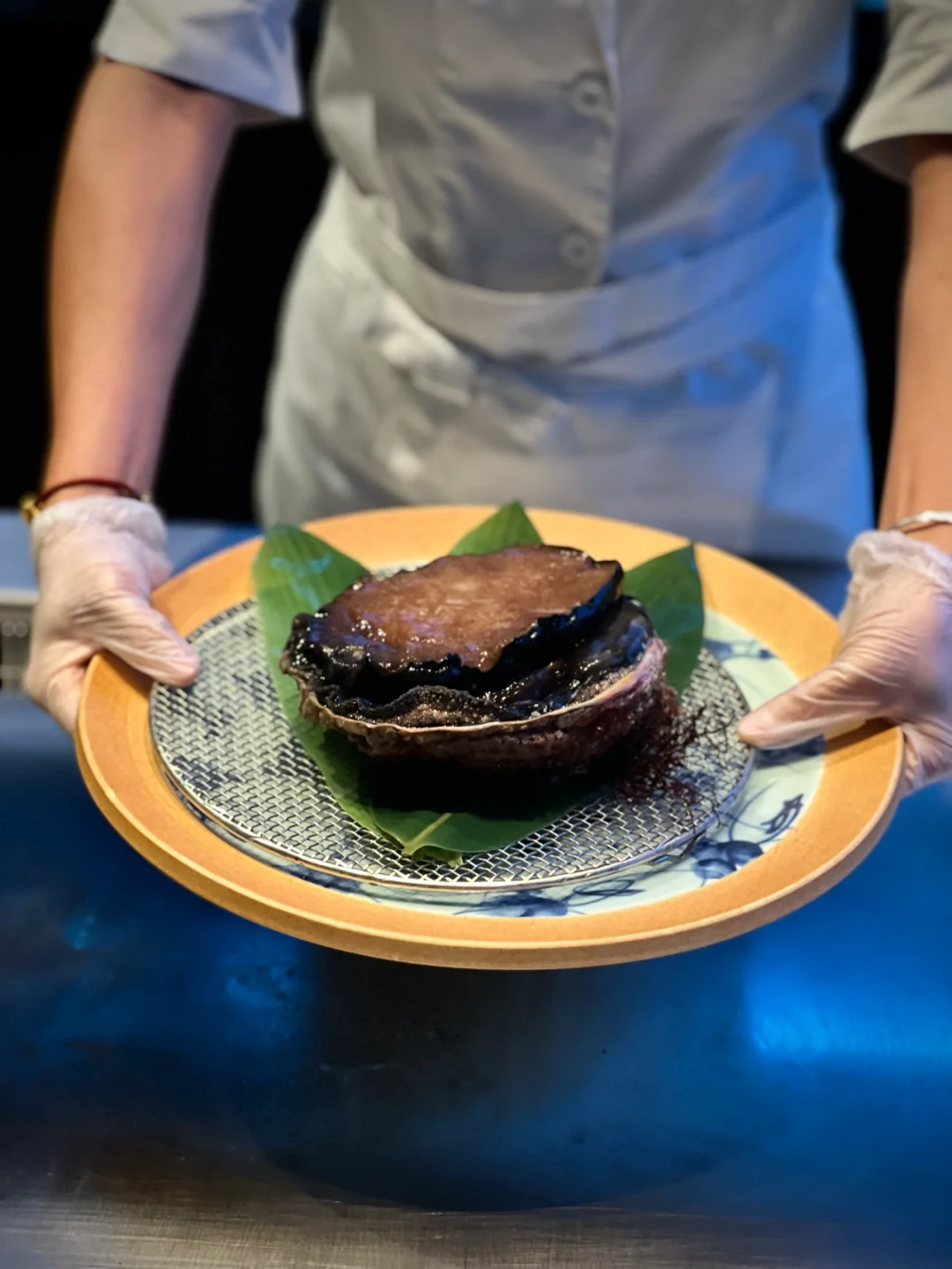 「澳洲黑金鲍」超级大个,美女厨师会问你想要做成什么口味,我们做了一份黑松露的一份鱼籽的,口感Q弹