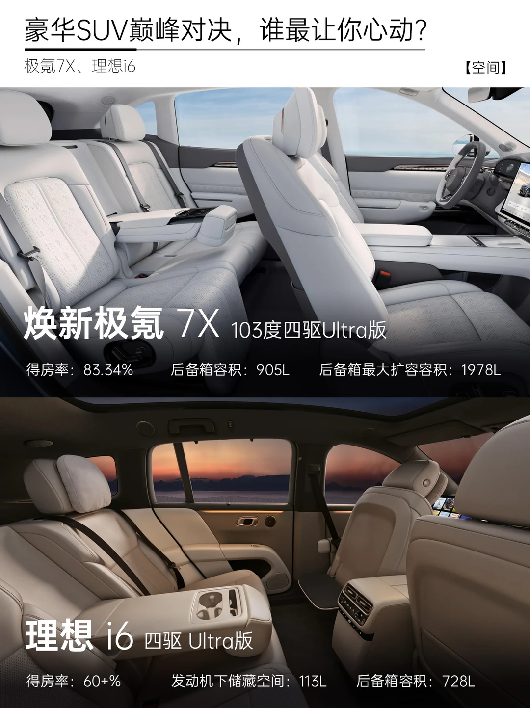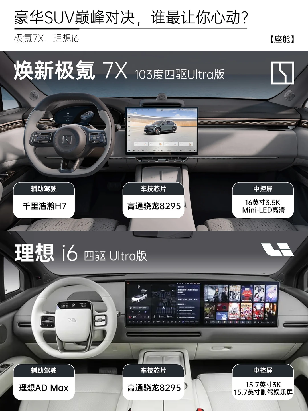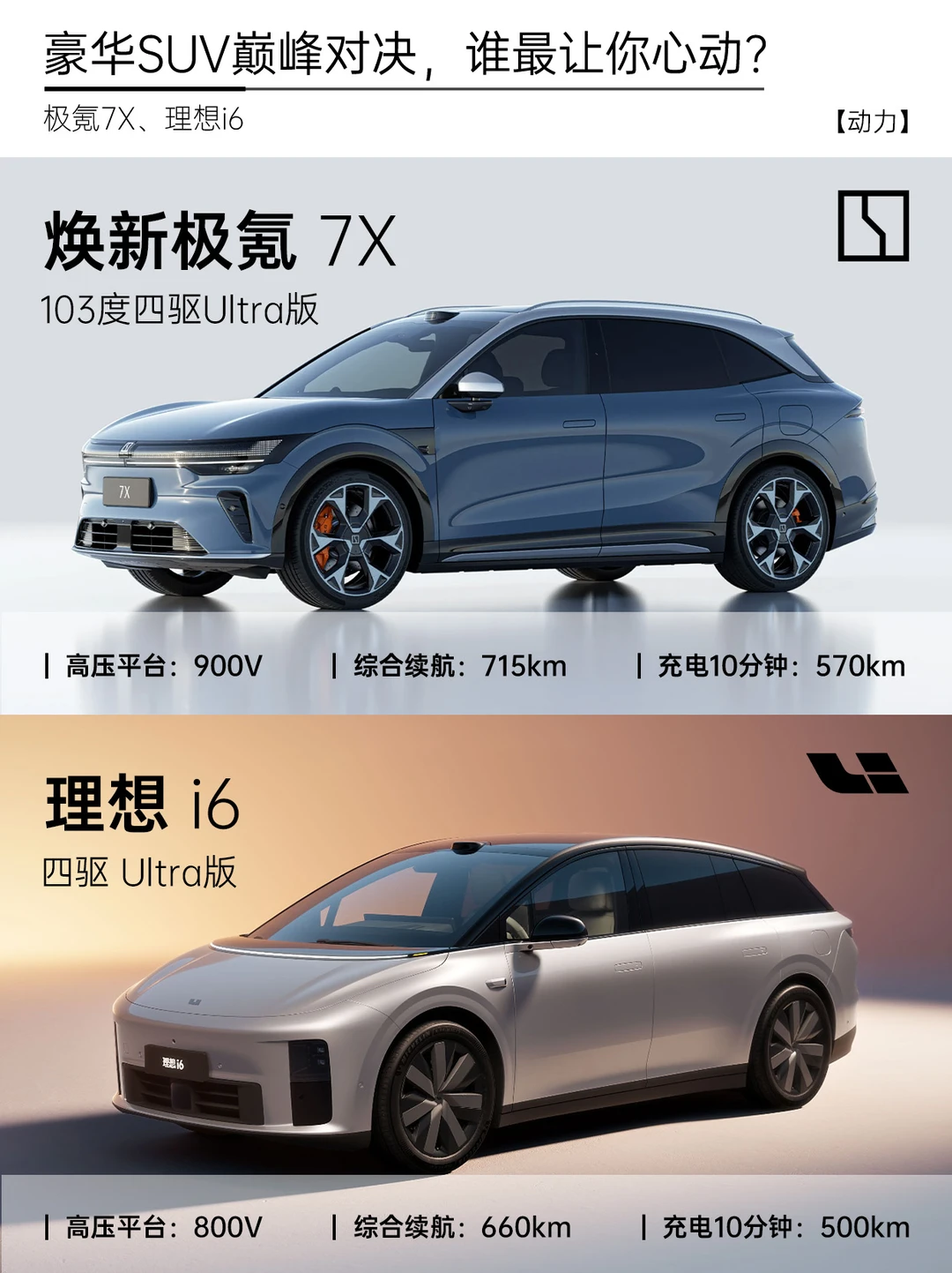🚗豪华SUV市场竞争很激烈,越来越多人认准豪华SUV带来的舒适体验,极氪7X在同级中销量一直领先。和热门的理想i6四驱版对比,焕新极氪7X四驱 Ultra版又有哪些惊喜带给我们呢?