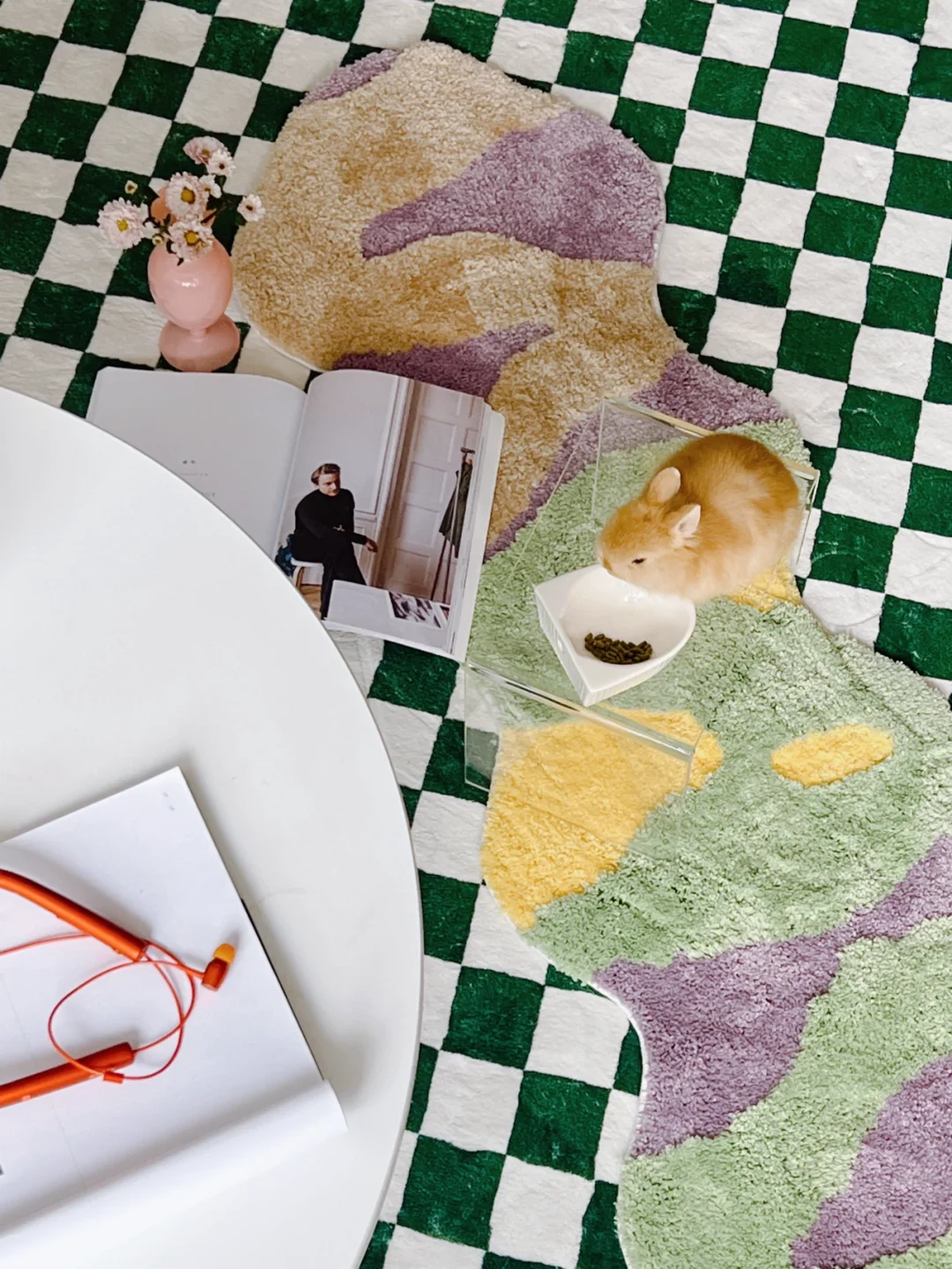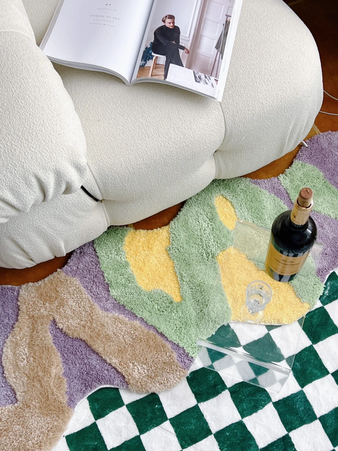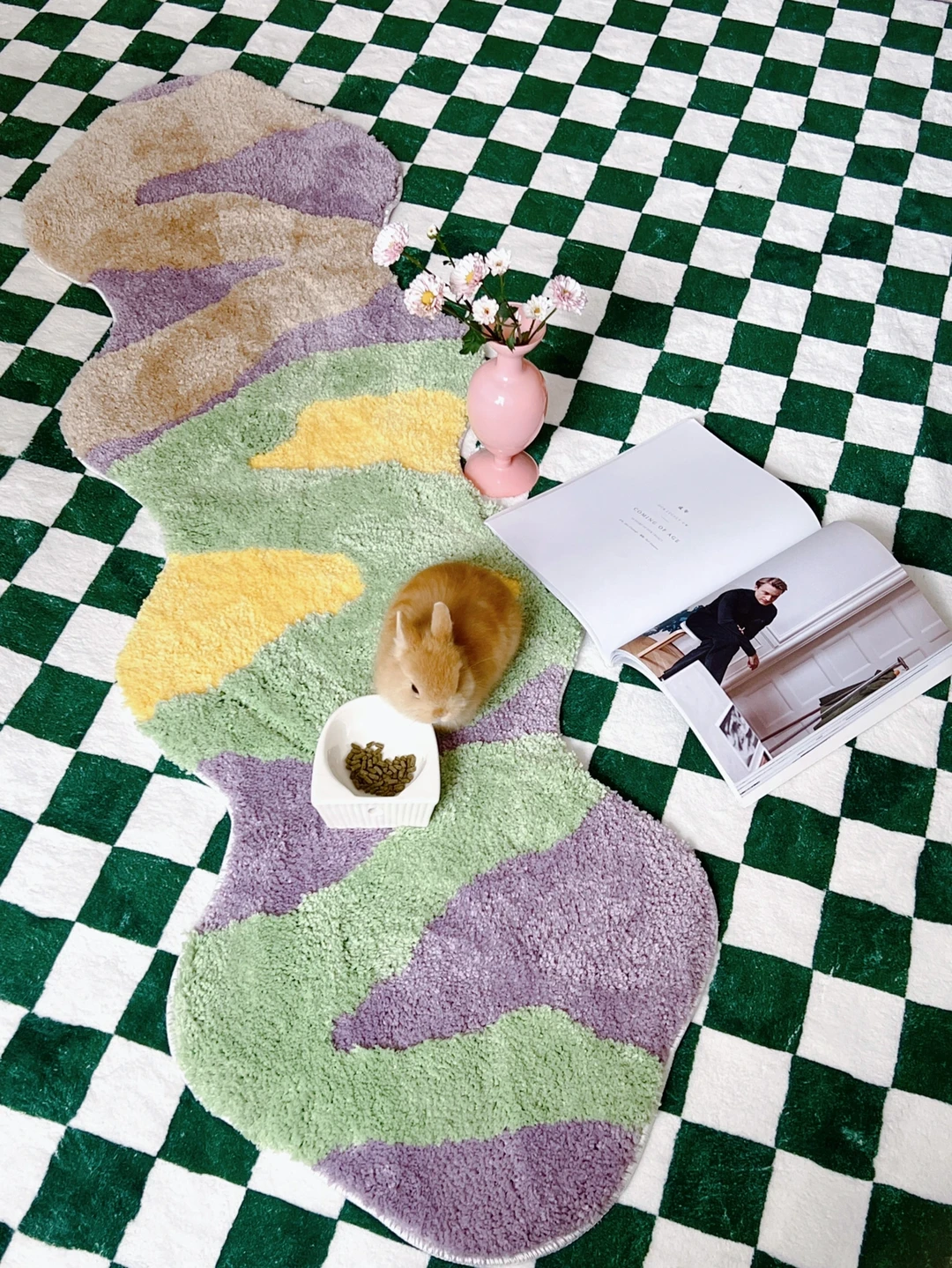 新入的波浪纹小地毯,毛茸茸的手感很好,软绵绵。紫黄绿配色是春天的颜色!