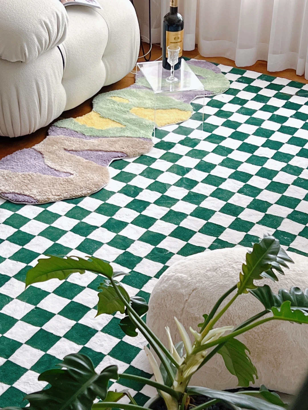 绿白格大地毯与绿植很衬,符合天然系生活!