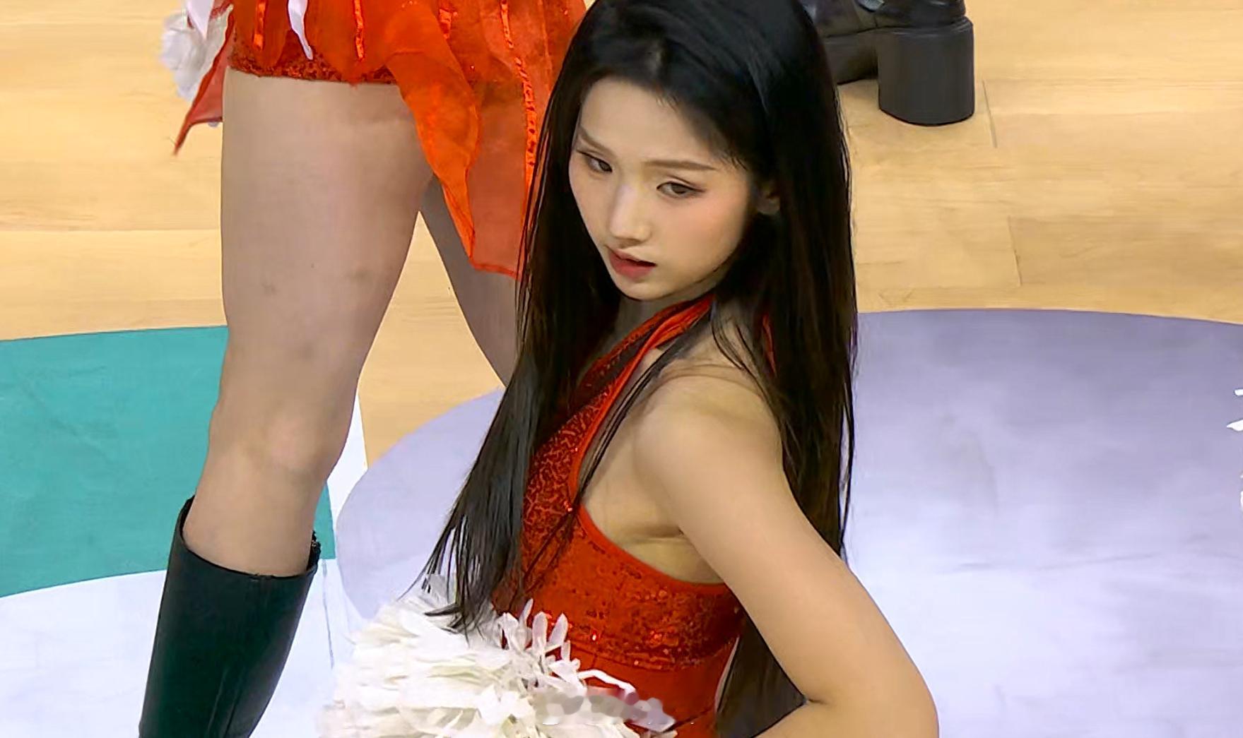 不开玩笑,这一下回眸好看。比赛已经无聊到让我关注啦啦队回眸了。cba俱乐部杯