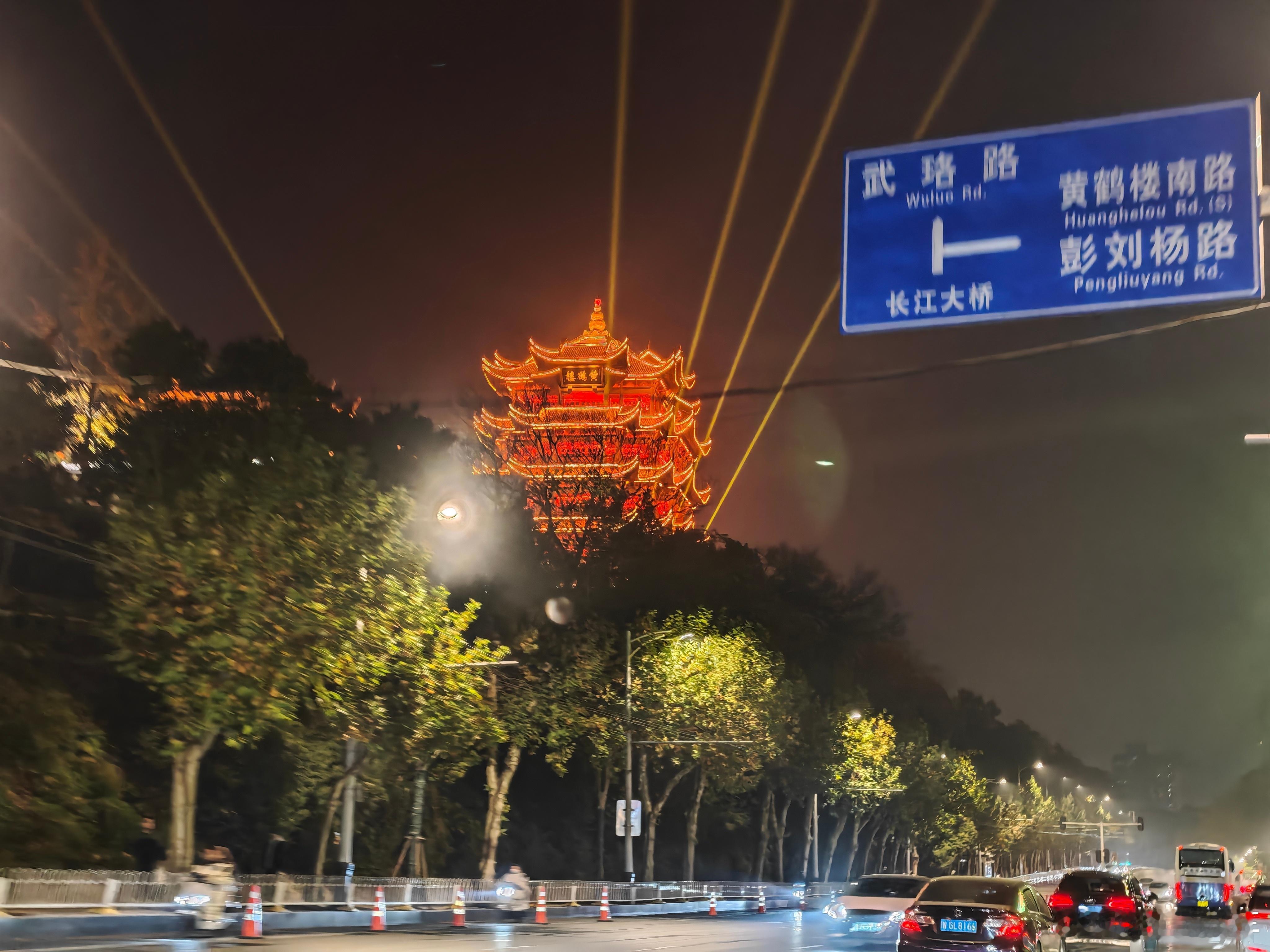 冬夜十一点多的长江大桥,冷风往车窗缝里钻。桥面没几辆车,路灯一路往前铺,黄鹤楼也