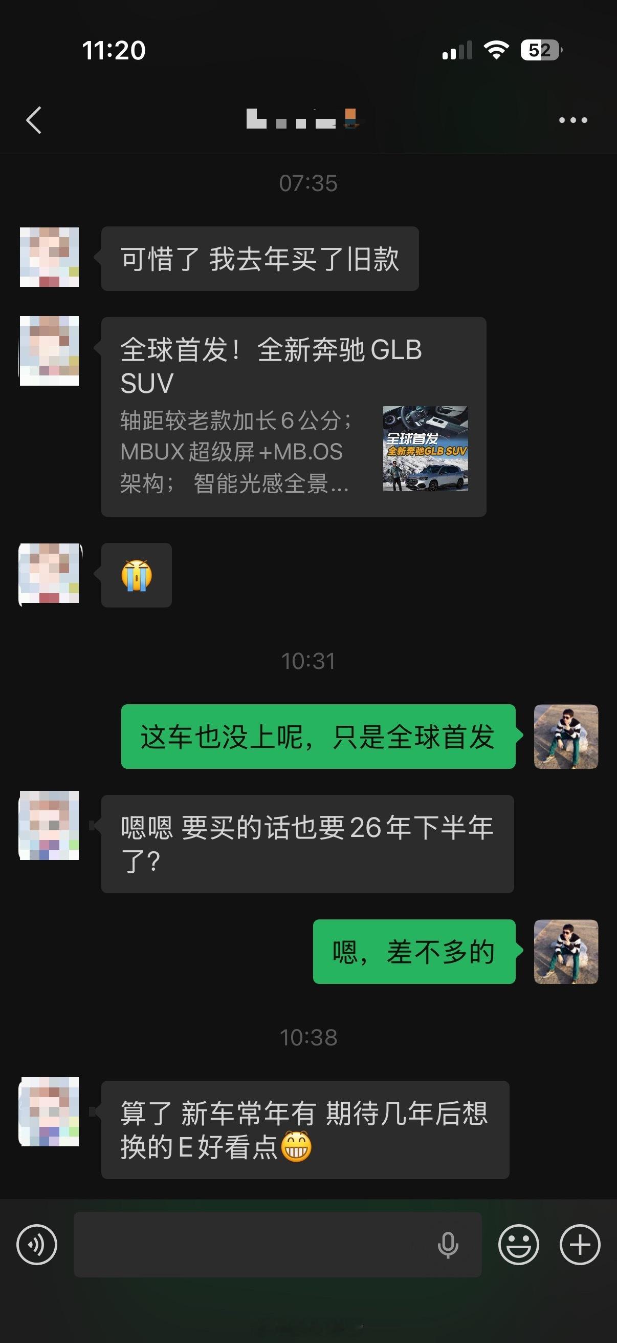 当时在现场看完全新一代的奔驰glb ,我的感受是更大、更智能,而且消费者的选择余地更多了。这也正是中国市场消费者最需要的。图九是一位朋友看完以后给我的留言。