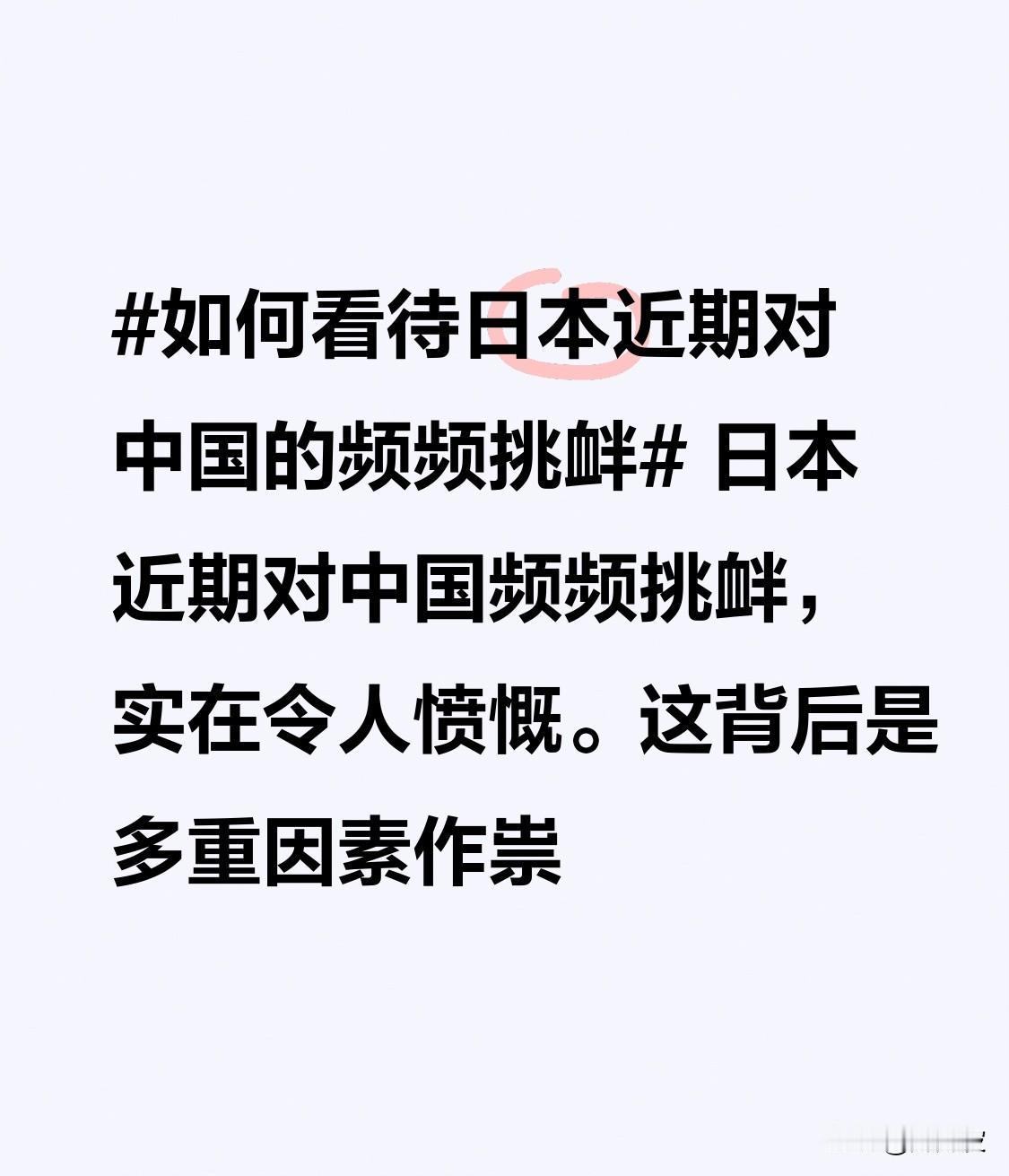 日本近期对中国频频挑衅,实在令人愤慨。这背后是多重因素作祟