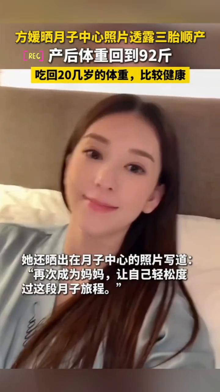 方媛晒月子中心照片透露三胎顺产,产后体重回到92斤,吃回20几岁的体重,比较健康。 10月22日,郭富城宣布三胎女儿出生。随后,妻子方媛转发回应:感谢老公,性别从不是我们爱的条件。 近日,方媛在社交平台分享动态,回复粉丝评论表示自己三胎是顺产,自曝目前体重92斤,终于吃回年轻时的体重,感觉现在比较健康。她还晒出在月子中心的照片写道:"再次成为妈妈,让自己轻松度过这段月子旅程。"