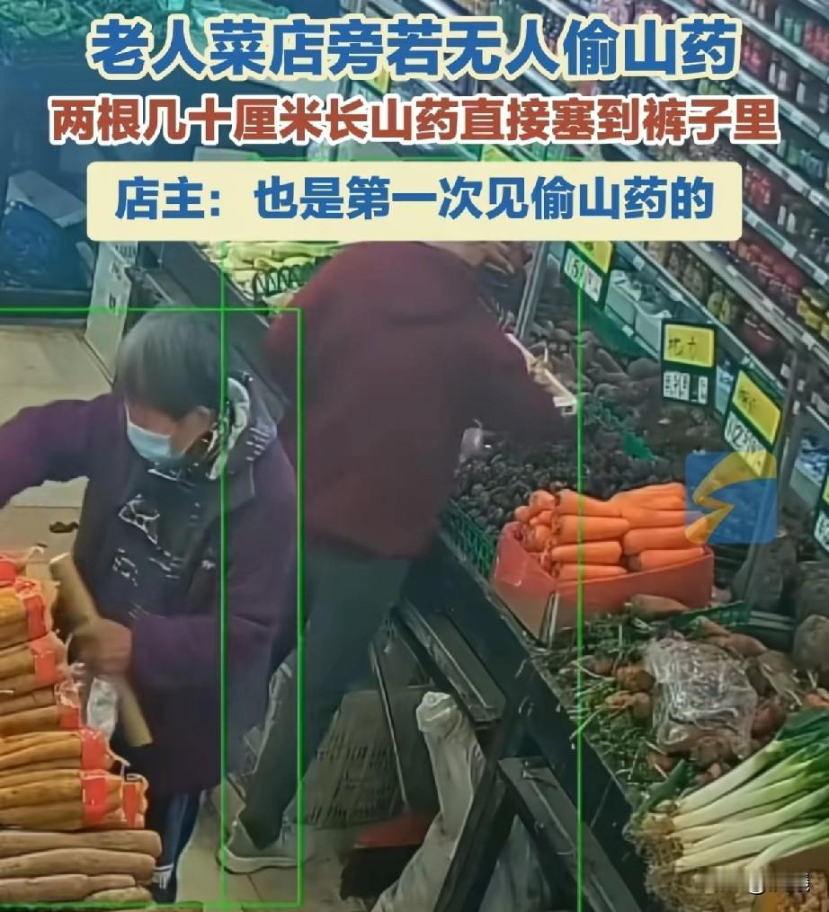 裤裆里塞山药,真是活久见! 12月7日,上海。 一超市里走进一老太太,八十岁左右,她来到山药货架处挑了几根不错的山药,开始掰掉不好的部分,只留下让她顺眼的中段部分。 按照正常,接下来老太太跟挑选好的蔬菜一起称重付钱就行,但她不按套路出牌,她瞅了瞅没有人注意她,就将两根粗大的山药塞进裤裆。 她以为自己动作迅速,神不知鬼不觉,没想到头上有高科技产品在记录整个过程。 也不怪她,毕竟那么大年纪,没见过多少高科技产品,但这事做的欠缺啊。 据店主讲,虽然后来警察去了,但看到那么大年纪,并且也没有成功带出,事情就算了。 店主说,见过偷别的东西的,没见过偷山药的,并且还那么长,的确,不光是店主,除了小编,相信很多人也是第一次见吧。 也不知道这位老太太是不家里经济困难,迫不得已这样行为,如果真是遇到困难,说出来大家也会帮助的,何必要这样呢? 再说了,山药这东西,它的粘液很容易让皮肤过敏,老太太也是胆大,希望没有刺激到皮肤吧。 这么大年纪的老人,社会经验已经很丰富了,希望老人给别人做出好的影响,展示正能量,毕竟别人尊老,你也要做到爱别人,对吧。