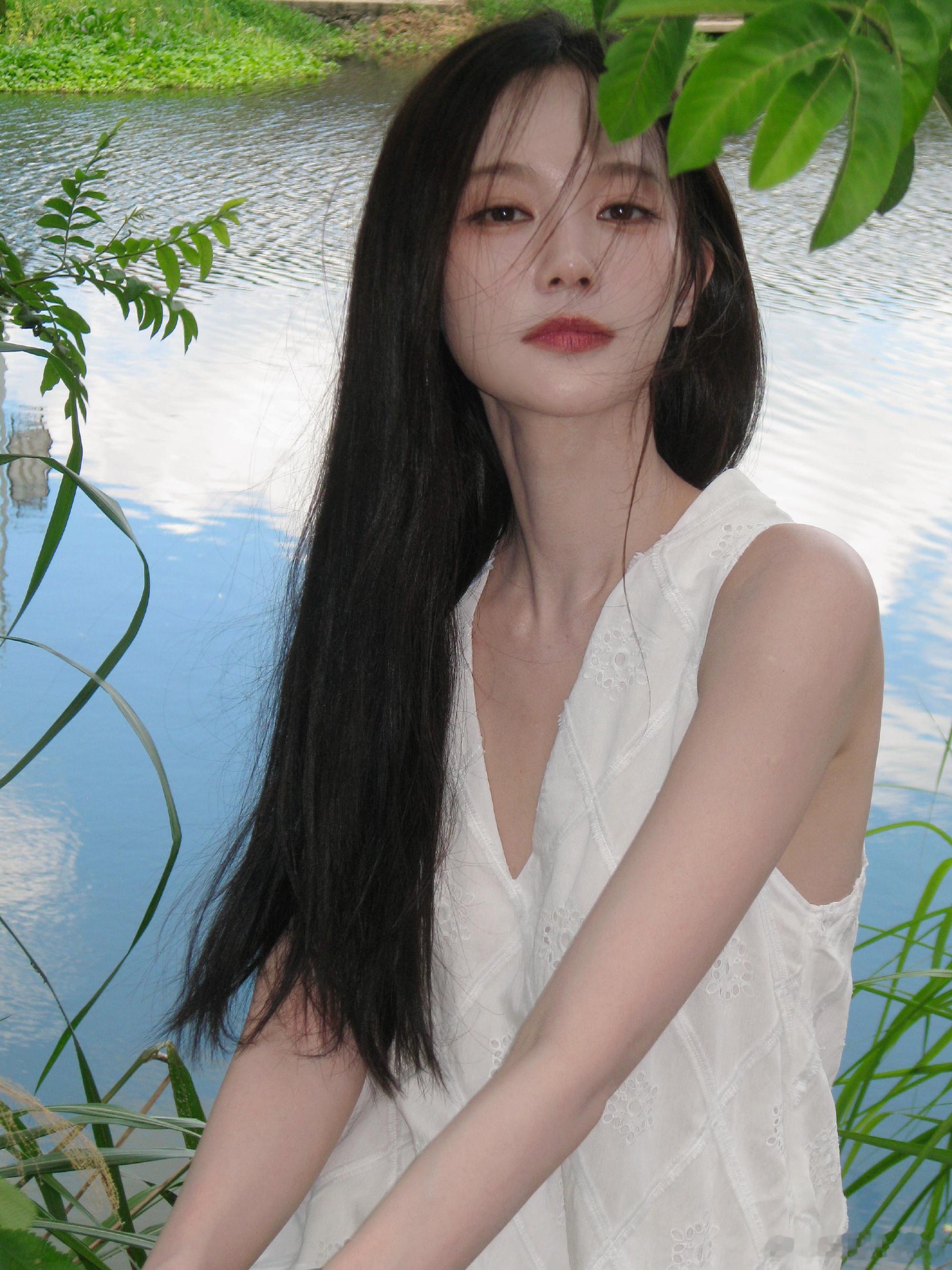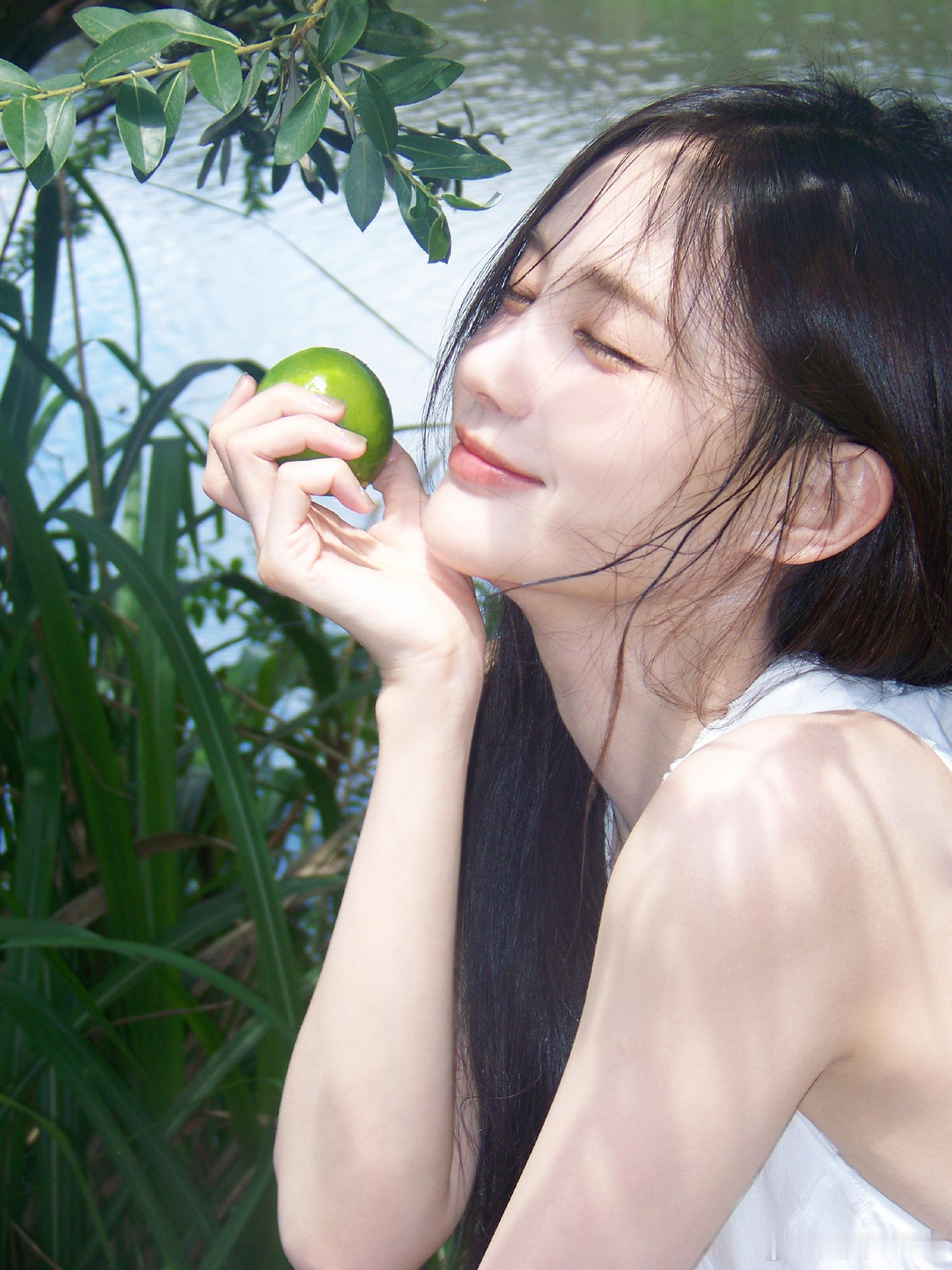 湖风缠过麻花辫,颈间蓝星碰碎波光,笑意漫开时,连远山都浸了层清甜。淡雅笑靥