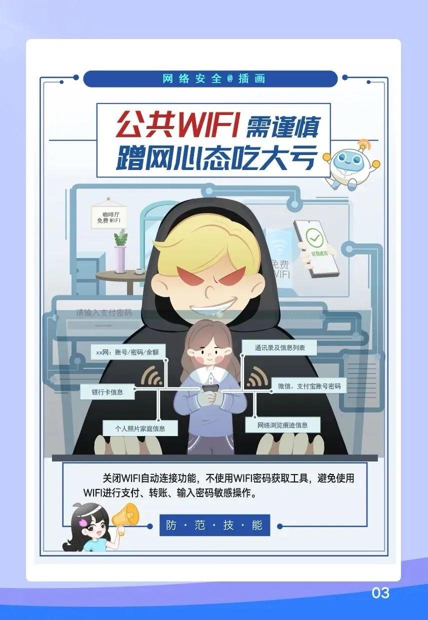 国安部紧急预警:公共WiFi3大致命陷阱+5步护财指南,别再为免费埋单 出门随手连免费WiFi,早已不是省心福利,而是藏着盗刷、窃密的高危陷阱!国安部明确警示,多地已现用户连陌生热点被盗刷数万的案例,黑客最低200元成本就能布套,这些风险和防护要点必须刻进心里,守住钱袋子刻不容缓。 一、3大高发陷阱,90%的人都在踩 1. “双胞胎热点”陷阱:黑客克隆星巴克、机场等正规WiFi名称,仅差1个空格或符号,信号调得更强还免密码,一连就相当于把手机交去监控,账号密码全暴露,深圳曾有用户5分钟被盗刷8.2万。 2. 验证盗刷陷阱:连接时要求输手机号验证码、关注陌生公众号,看似正常操作,实则验证码直接被用来登支付账户,公众号链接还藏木马,北京用户机场连网后1.5万瞬间被转走。 3. 隐藏植入陷阱:哪怕不转账,连不安全WiFi也可能被植恶意程序,持续窃取照片、聊天记录,甚至远程操控设备,涉密人员误连还可能泄露国家秘密。 二、2条铁律别破,碰了必踩坑 • 未知热点绝不连:路边、商场无明确标识、名称模糊的WiFi,再方便也不点,大概率是诈骗套。 • 敏感操作必避网:转账、登银行/社交账号,坚决不用任何公共WiFi,手机流量才是绝对安全区,别图省事亏大钱。 三、5步防护妙招,快速筑牢安全线 1. 关自动连接:立刻关闭设备WiFi自动连接功能,避免路过误连风险热点,从源头防隐患。 2. 核实再连网:确需用餐厅、商场WiFi,当面问商家核名称密码,不凭猜测连同名网络。 3. 拒输敏感信息:连公共WiFi时,绝不填银行卡号、支付密码,遇验证要求直接退出,100%是陷阱。 4. 开双重认证:银行、支付等关键账号全开启双重认证,哪怕信息泄露,黑客也难盗刷。 5. 更防护软件:装正规安全防护软件,定期更新杀毒,高风险场景可开VPN加密网络。 免费的往往最贵,一次侥幸蹭网可能亏光积蓄,国安部提醒,网络安全无小事,牢记防护要点,同时转发给家人朋友,互相提醒避坑,共守财产和隐私安全,发现可疑线索可拨12339举报。