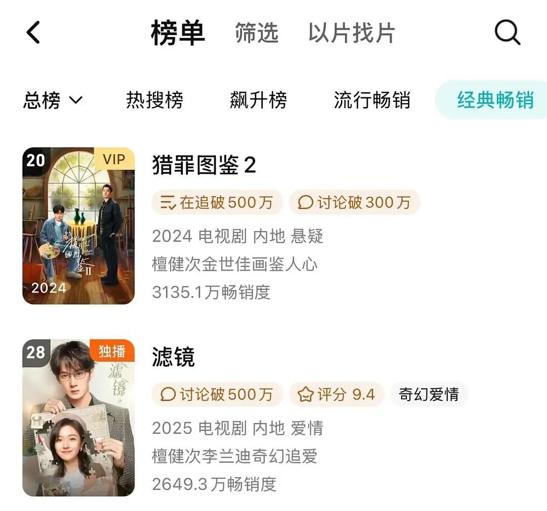 檀健次唯一同时做到两部一番在拉新榜,两部一番在N刷榜的演员