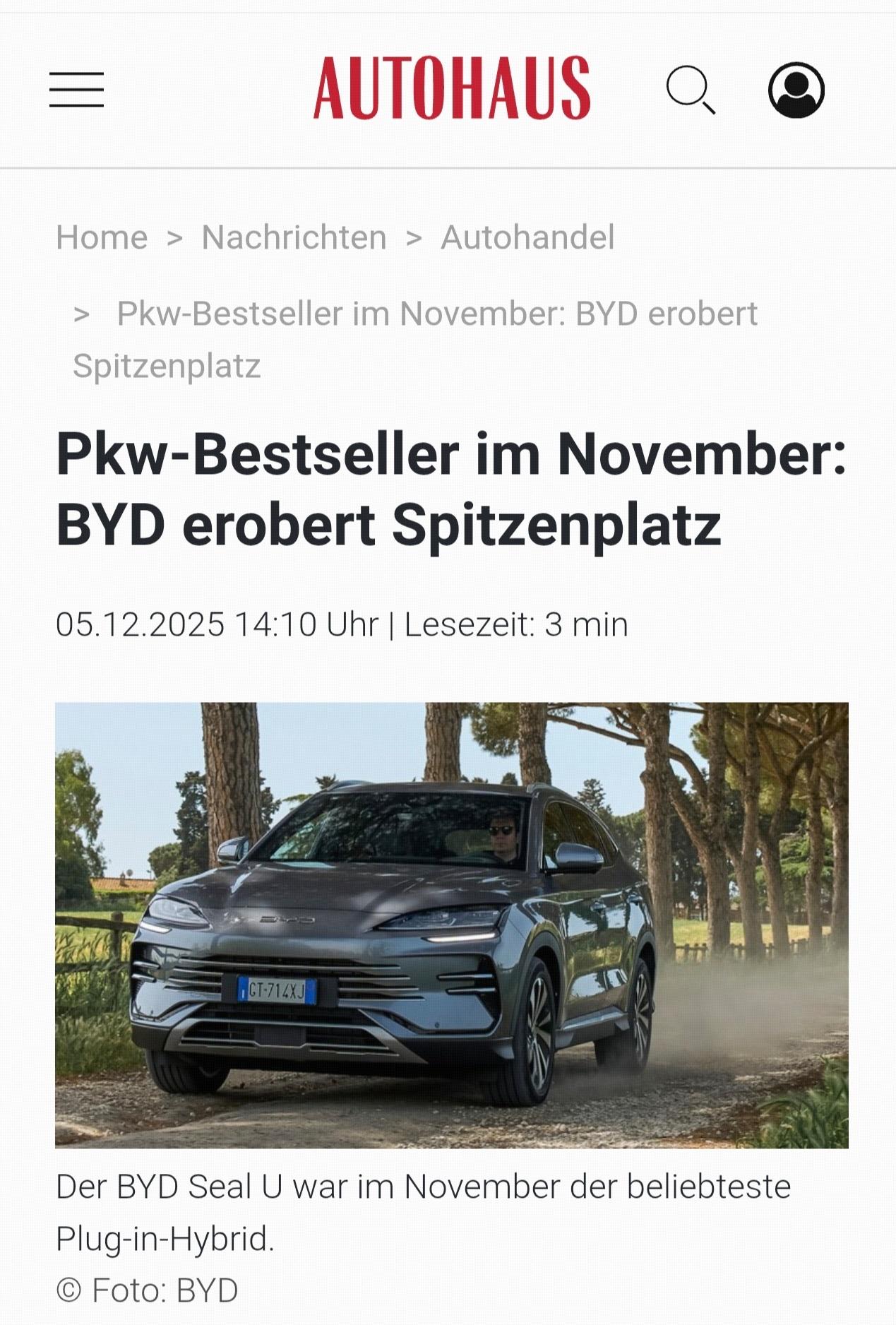 海外再提速!比亚迪全球化发展一路高歌,宋PLUS首夺德国插混月度销冠 论出海成功典范还是得看比亚迪,其全球化发展再传捷报!比亚迪旗下车型宋PLUS(BYD SEAL U)凭借着出色的销量成绩,直接登顶德国11月插混市场销量冠军。这一佳绩不仅是中国品牌首次在德国主流细分市场独占鳌头,更标志着比亚迪在欧洲的规模化突破进入了全新阶段。可以说这是国产新能源的高光时刻! 随着比亚迪全球化的不断加速,在海外不少国家和地区都取得了令人瞩目的成绩。数据显示,2025年1-11月,比亚迪在德国累计销量达19197辆,同比增长超647.5%;11月单月销量同比激增超834.1%,市场份额提升至1.6%。BYD SEAL U的成功可以说发挥了重要作用,要知道比亚迪在插混技术上是妥妥的行业引领者。 与此同时,比亚迪在欧洲其他核心市场同样表现强劲,例如在西班牙市场以19.2%的份额超越特斯拉登顶电动车销量榜。在英国市场,比亚迪1-11月累计销量为43740辆,同比增长488.5%。而在意大利市场1-11月累计销量为20211辆,同比飙升4878.1%...... ,不得不说比亚迪在欧洲市场呈现出爆发式的增长,海外已成为比亚迪新的增长点。 比亚迪全球化发展能够取得如此出类拔萃的成绩,我想技术实力与本土化布局是核心原因。技术这块,BYD SEAL U搭载的DM-i超级混动系统精准解决欧洲用户续航焦虑,在带来超长续航的同时,安全性表现的极高。此外,比亚迪通过匈牙利工厂建设、8艘自有滚装船组成的全球物流网络等,大幅缩短交付周期。 今年1月至11月,比亚迪乘用车及皮卡海外累计销量已突破91万辆,全球新能源汽车总销量超1470万辆,有一说一这成绩真的是相当耀眼。可以说在硬核新能源技术以及全球化布局下,比亚迪在新能源汽车领域持续带来惊喜,不断为中国智造的发展贡献出更加强大的力量。
