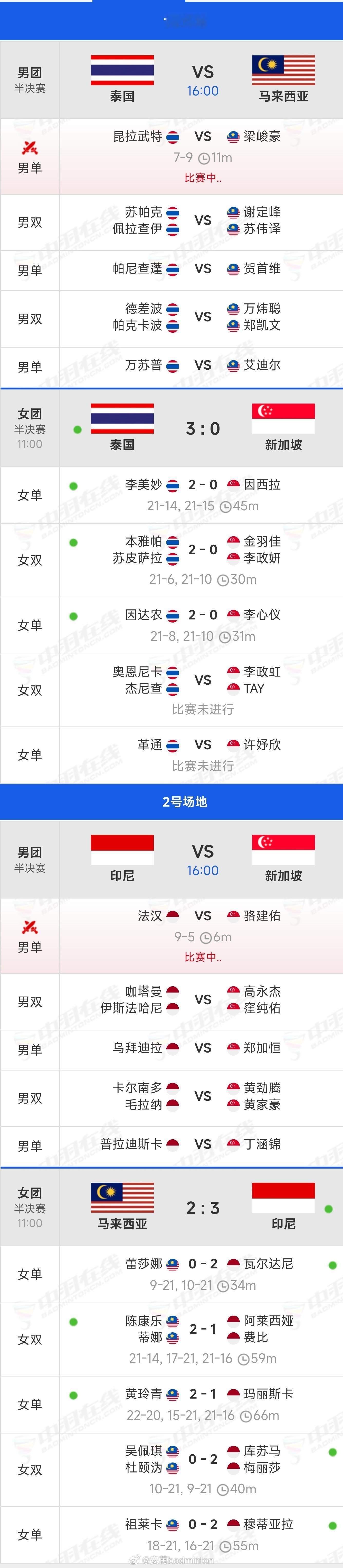 2025年东南亚运动会羽毛球男女团半决赛赛况女团决赛:泰国🇹🇭 🆚 印尼🇮🇩男团半决赛正在进行中!羽毛球