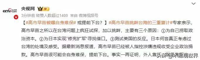 高市早苗就算提前下台也不能说明什么! 可以说高市的涉台言论绝对不是个别现象,从现在日本国内一致的对抗表现,就可以完完全全看得出来。 无论将来是什么高市还是矮市,早苗还是晚苗,军国主义的趋势已经形成趋势,不可不防!