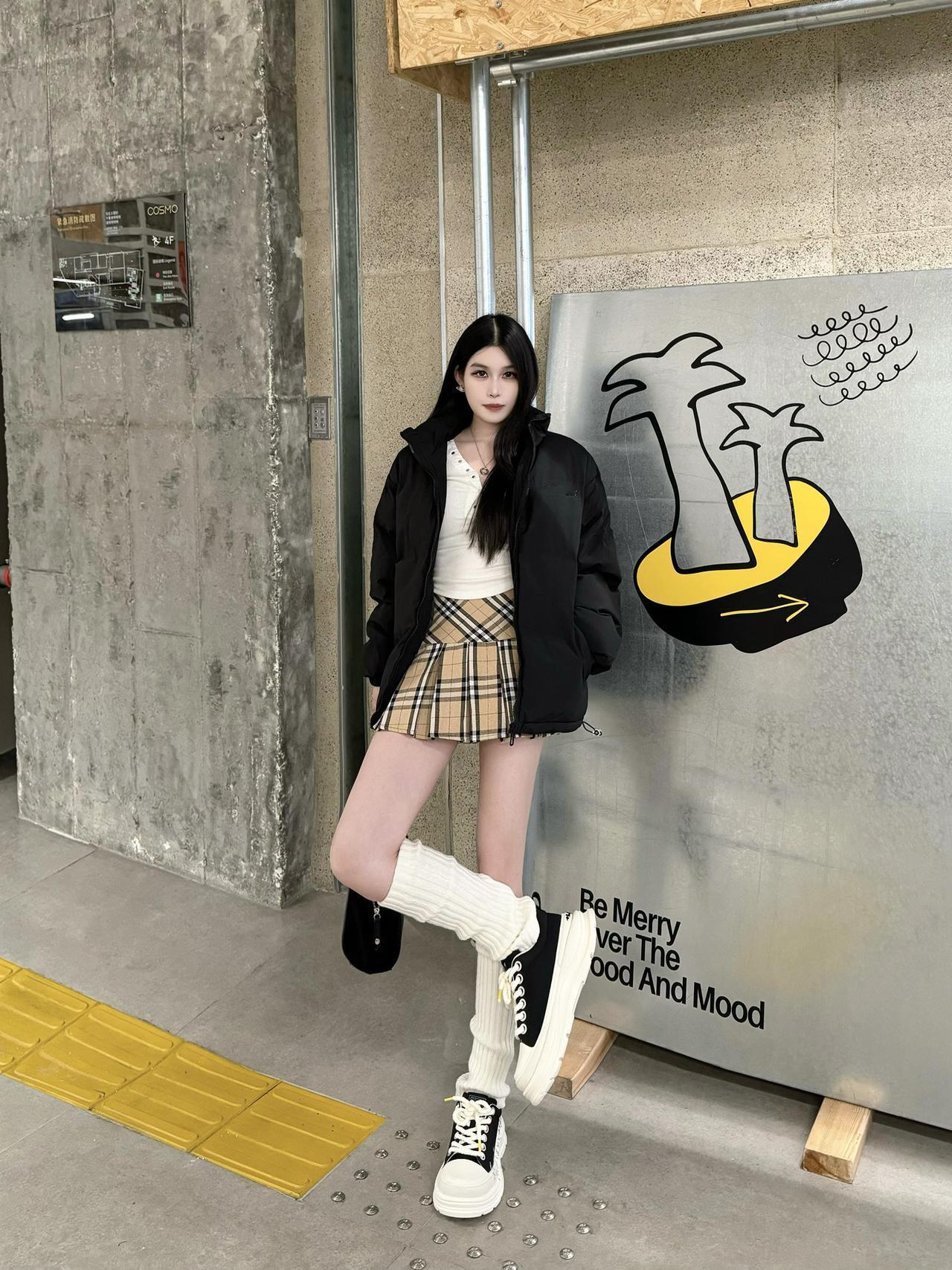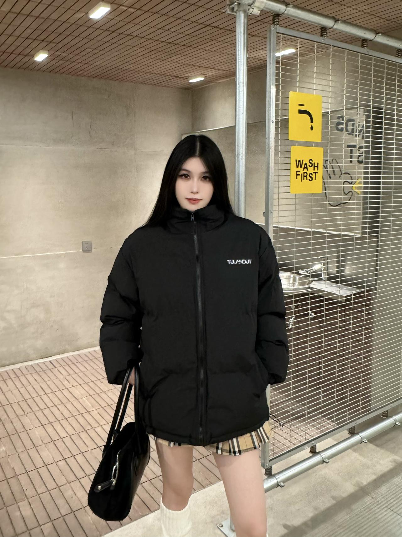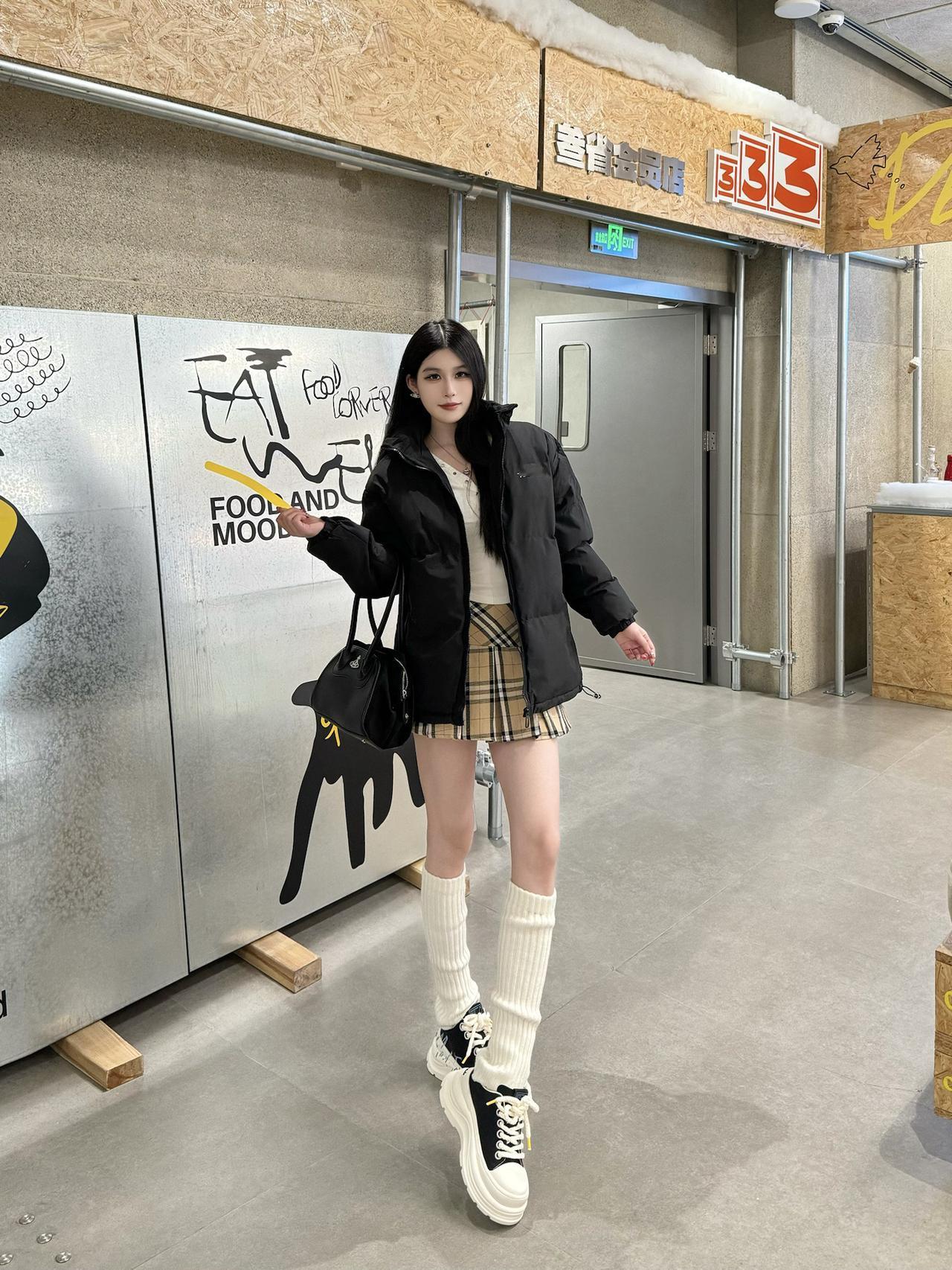 美式甜酷辣妹💳冬天我要保暖不臃肿!|||时髦精的冬天主打一个保暖不臃肿~ 今天我穿了一件 图兰朵 棉服🧥 黑色🖤看着高级又大气 怎么搭都不出错 胸前滴白色字母印花简约又不失潮流感 立领设计上身防风保暖又帅气😎 宽松版型穿着也是hih休闲又藏肉 整件敲厚实💭但又不会显得臃肿~ 我下面搭配了同色系厚底鞋和格纹短裙 美式甜酷辣妹感拉满! 美式小众棉服 美式工装棉服女 美式短款棉服 辣妹棉服 美式设计棉服 美式棉服 美式冬装棉服