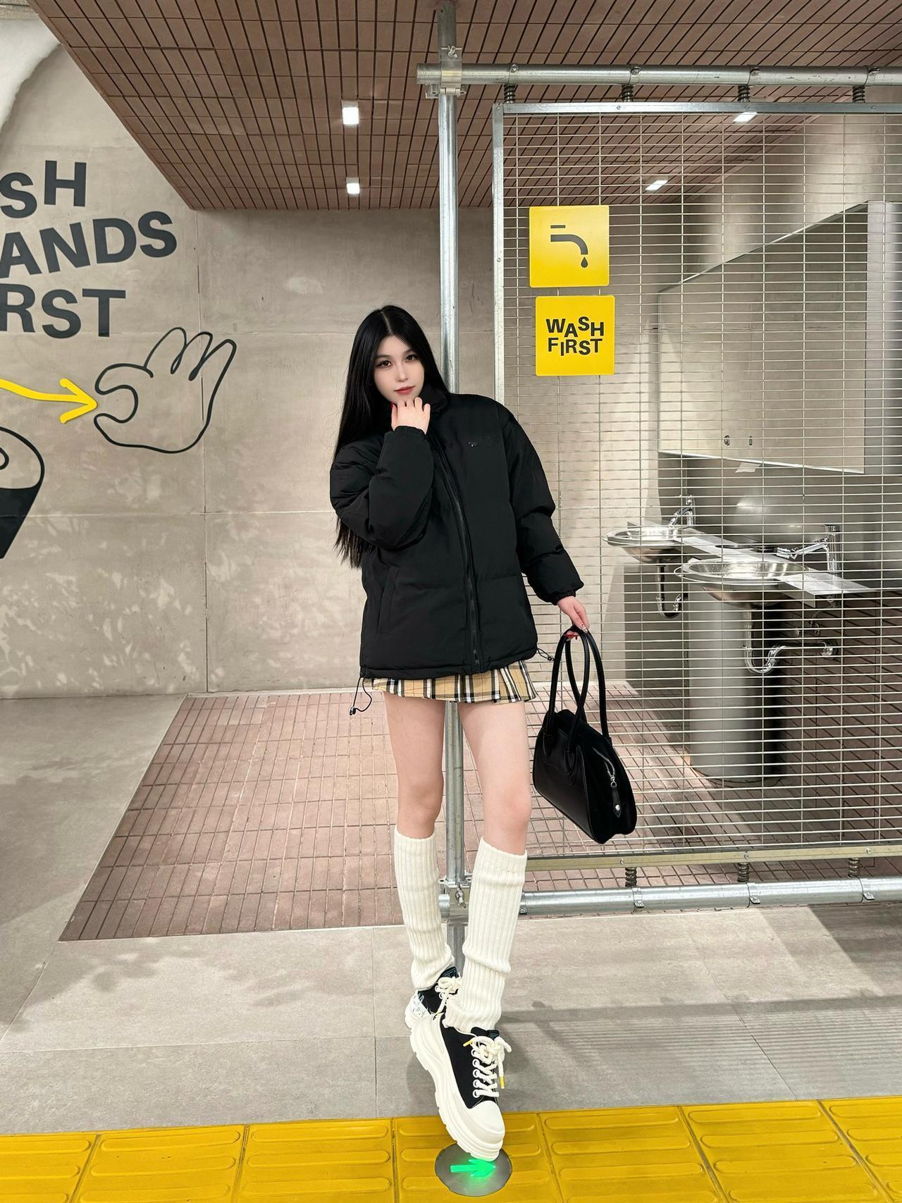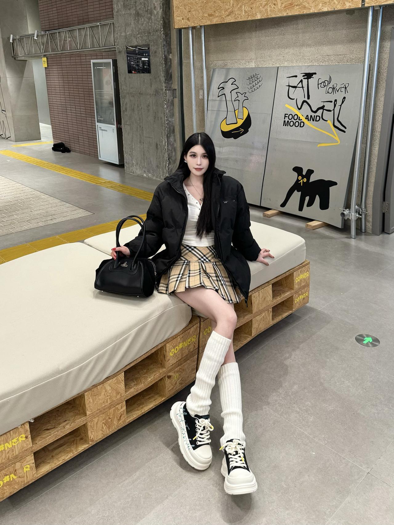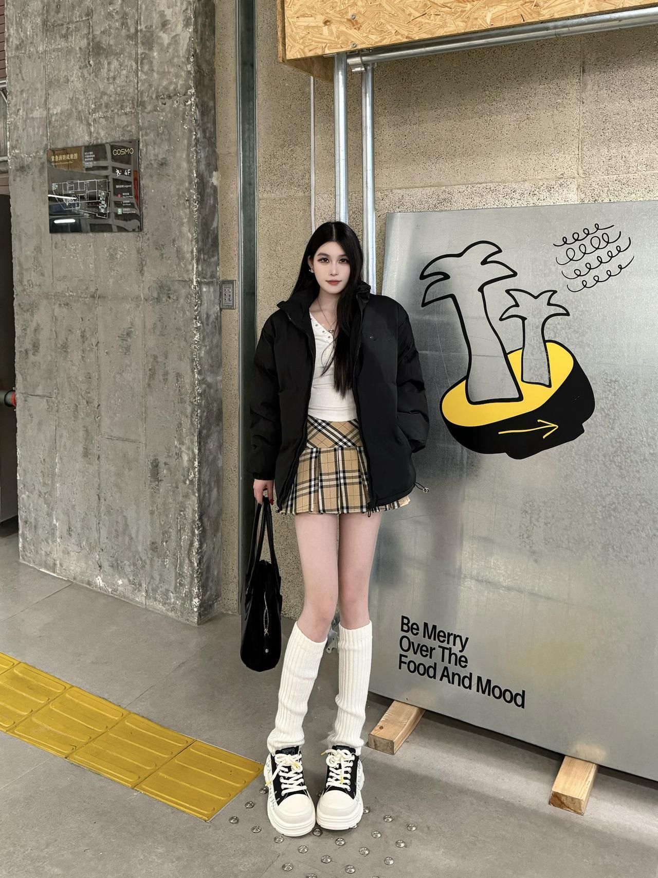 美式甜酷辣妹💳冬天我要保暖不臃肿!|||时髦精的冬天主打一个保暖不臃肿~ 今天我穿了一件 图兰朵 棉服🧥 黑色🖤看着高级又大气 怎么搭都不出错 胸前滴白色字母印花简约又不失潮流感 立领设计上身防风保暖又帅气😎 宽松版型穿着也是hih休闲又藏肉 整件敲厚实💭但又不会显得臃肿~ 我下面搭配了同色系厚底鞋和格纹短裙 美式甜酷辣妹感拉满! 美式小众棉服 美式工装棉服女 美式短款棉服 辣妹棉服 美式设计棉服 美式棉服 美式冬装棉服