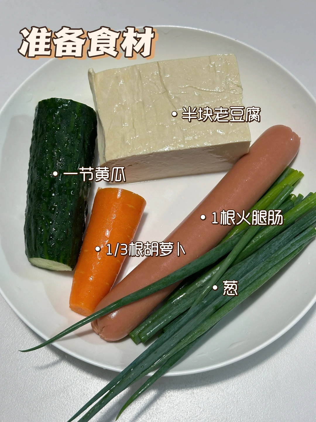 🥗食材:豆腐、黄瓜、火腿、胡萝卜、鸡蛋、葱花
