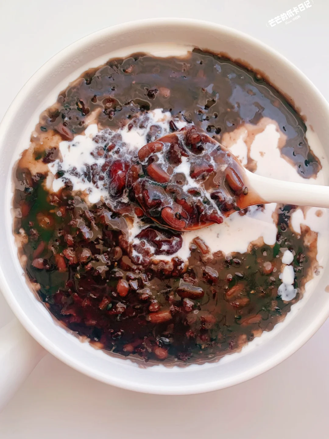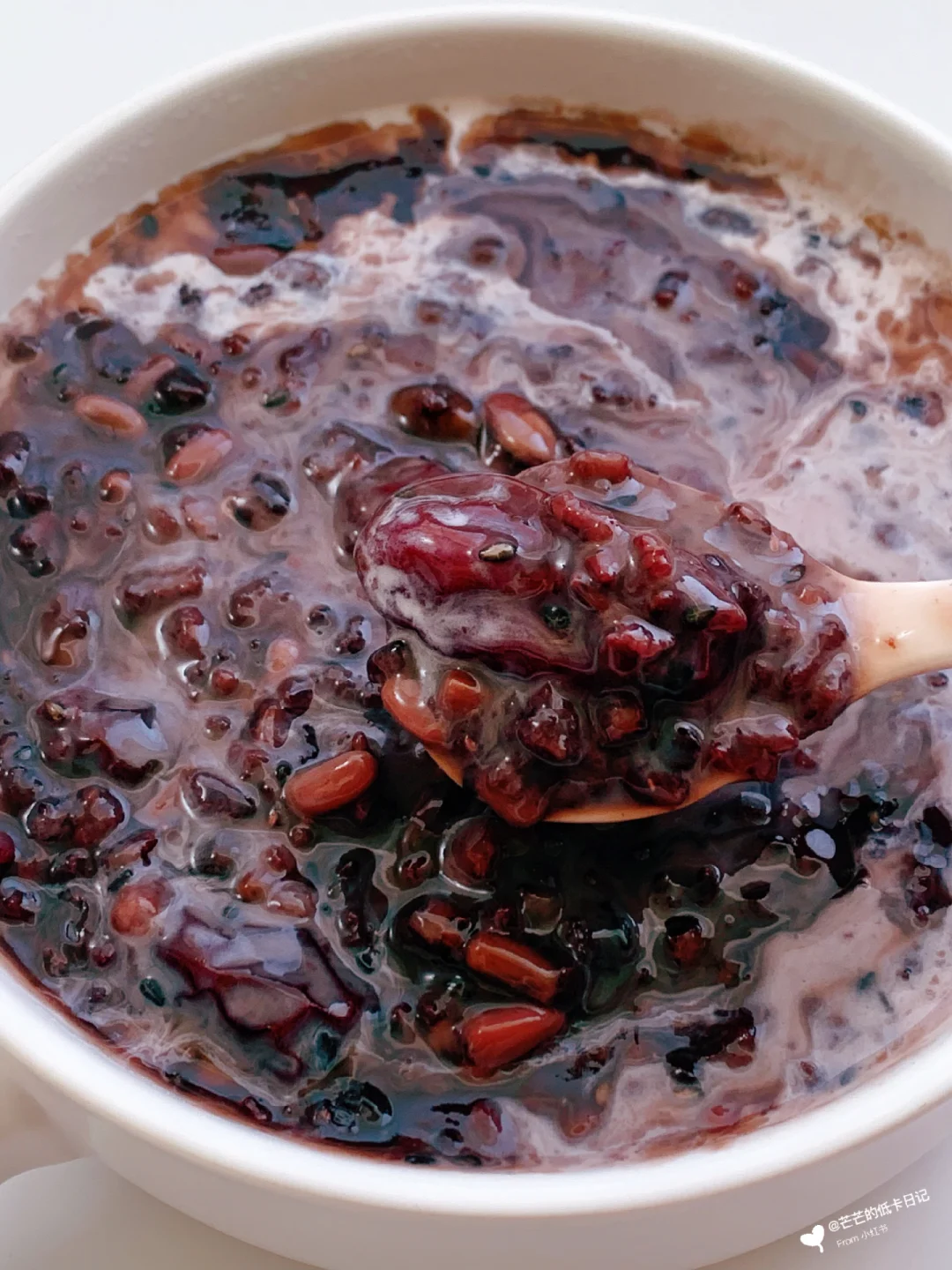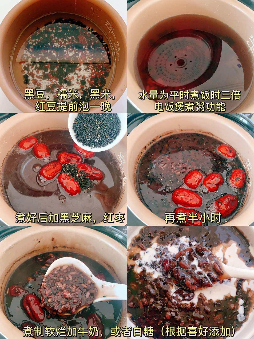 糯叽叽的杂粮粥,真的强烈推荐‼️脱发,气血不好的👭强推!减脂期的姐妹也可以多吃,做法超级简单,奶香味十足,巨巨巨好喝❗ ~~给家人做起来吧!!! 食材: 主料:黑豆,黑米,黑芝麻,糯米,红豆,红枣 辅料:纯牛奶,白糖(选择性放) [打卡R]做法见图片[打卡R] ❤小提示: 黑米,糯米,黑豆,红豆要提前泡一晚 [向右R]晚上做好,还可以做早餐,经常喝气色会越来越好,掉发的女孩建议多喝它❗