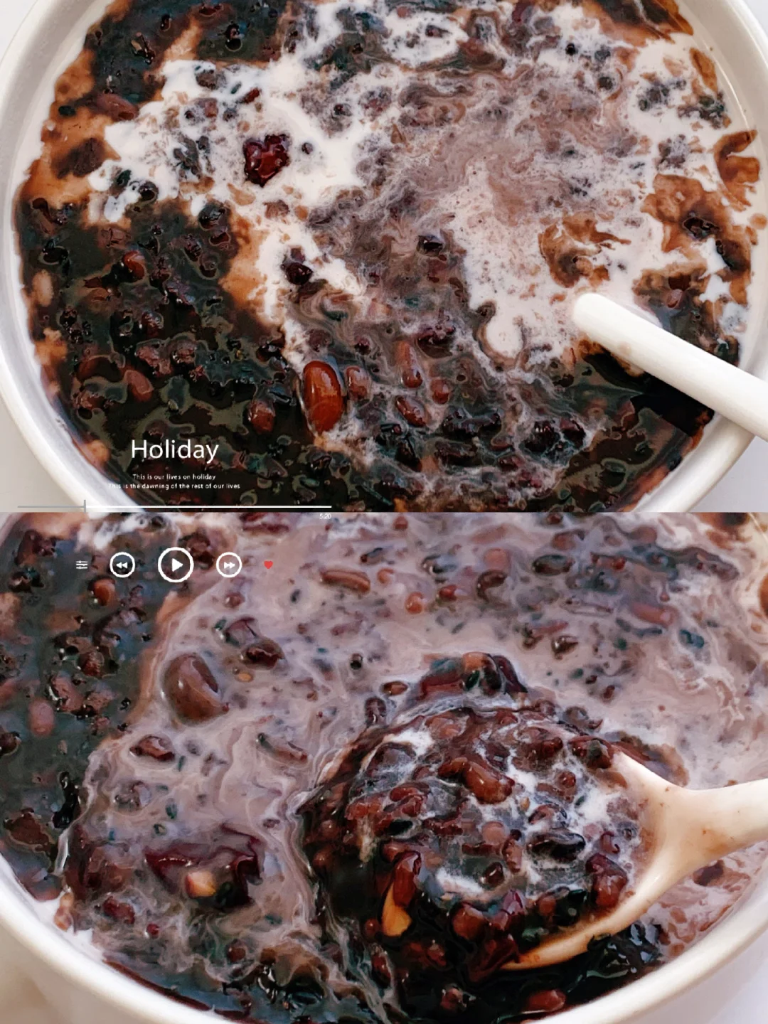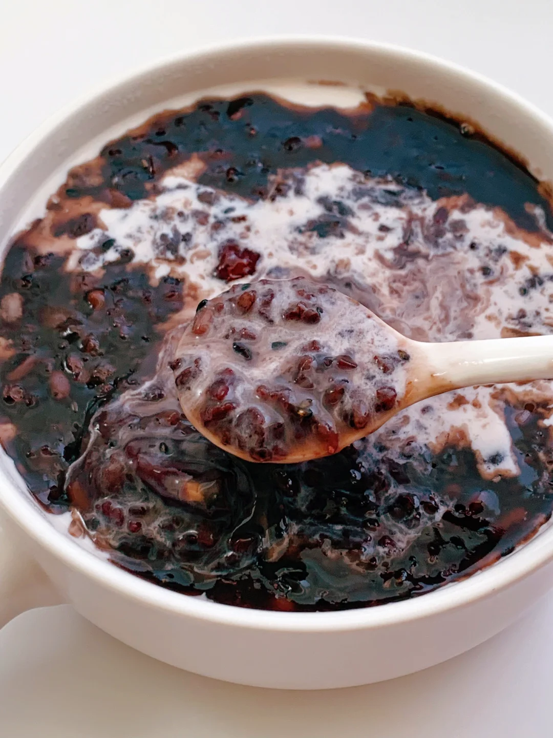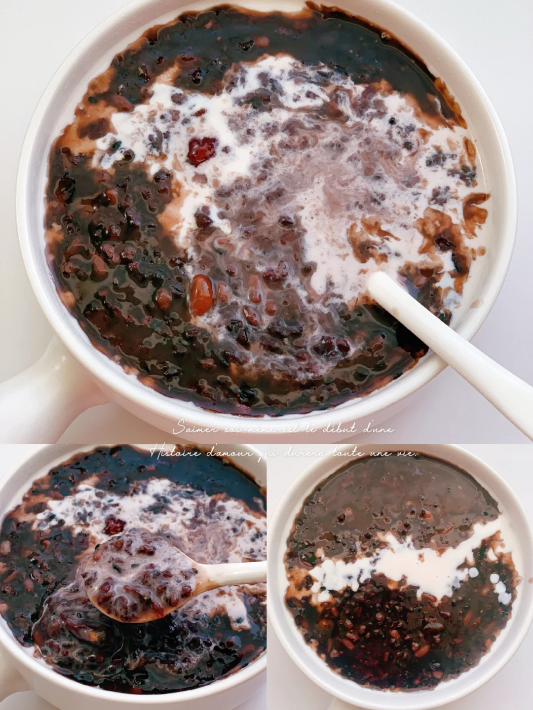 糯叽叽的杂粮粥,真的强烈推荐‼️脱发,气血不好的👭强推!减脂期的姐妹也可以多吃,做法超级简单,奶香味十足,巨巨巨好喝❗ ~~给家人做起来吧!!! 食材: 主料:黑豆,黑米,黑芝麻,糯米,红豆,红枣 辅料:纯牛奶,白糖(选择性放) [打卡R]做法见图片[打卡R] ❤小提示: 黑米,糯米,黑豆,红豆要提前泡一晚 [向右R]晚上做好,还可以做早餐,经常喝气色会越来越好,掉发的女孩建议多喝它❗