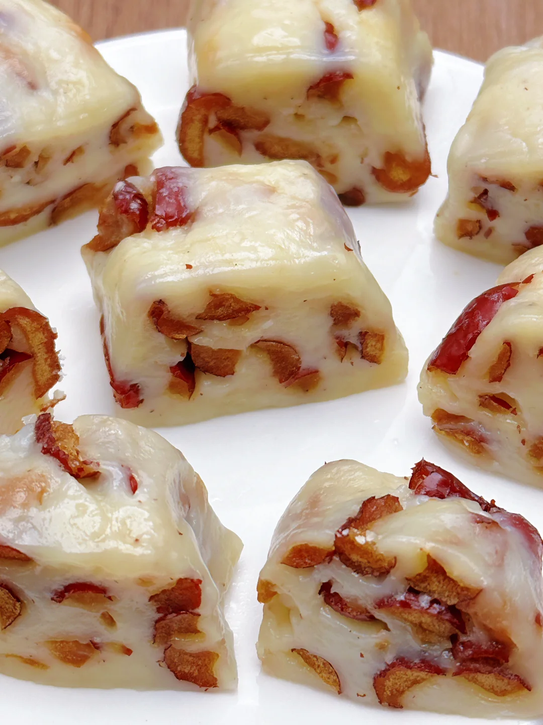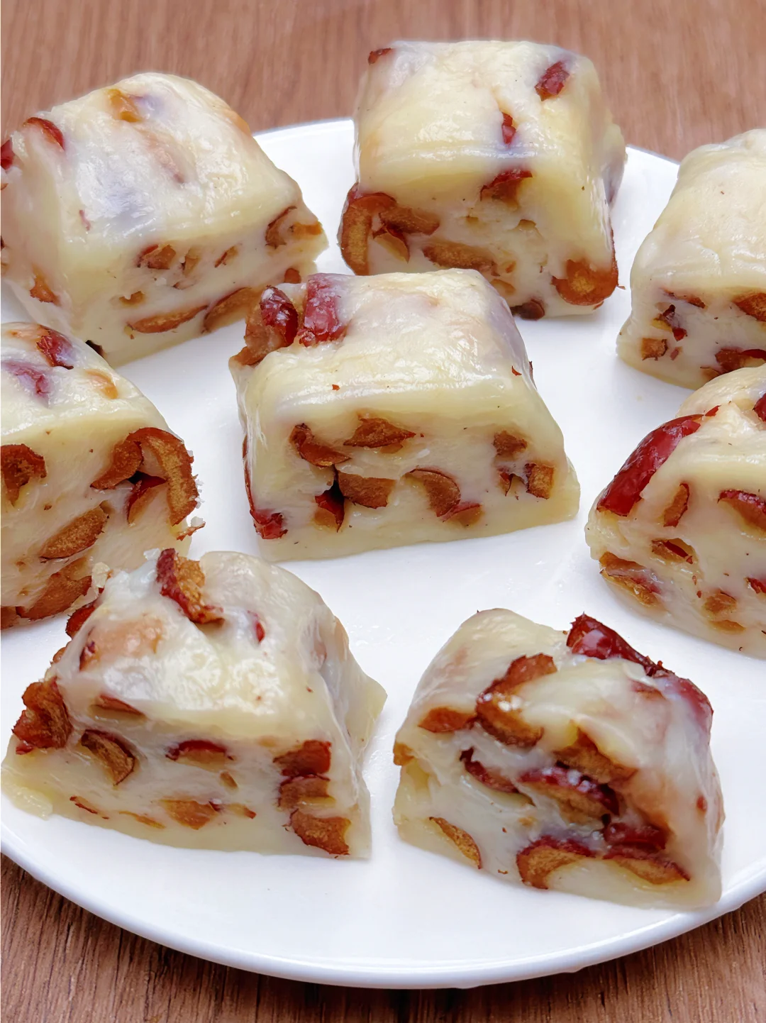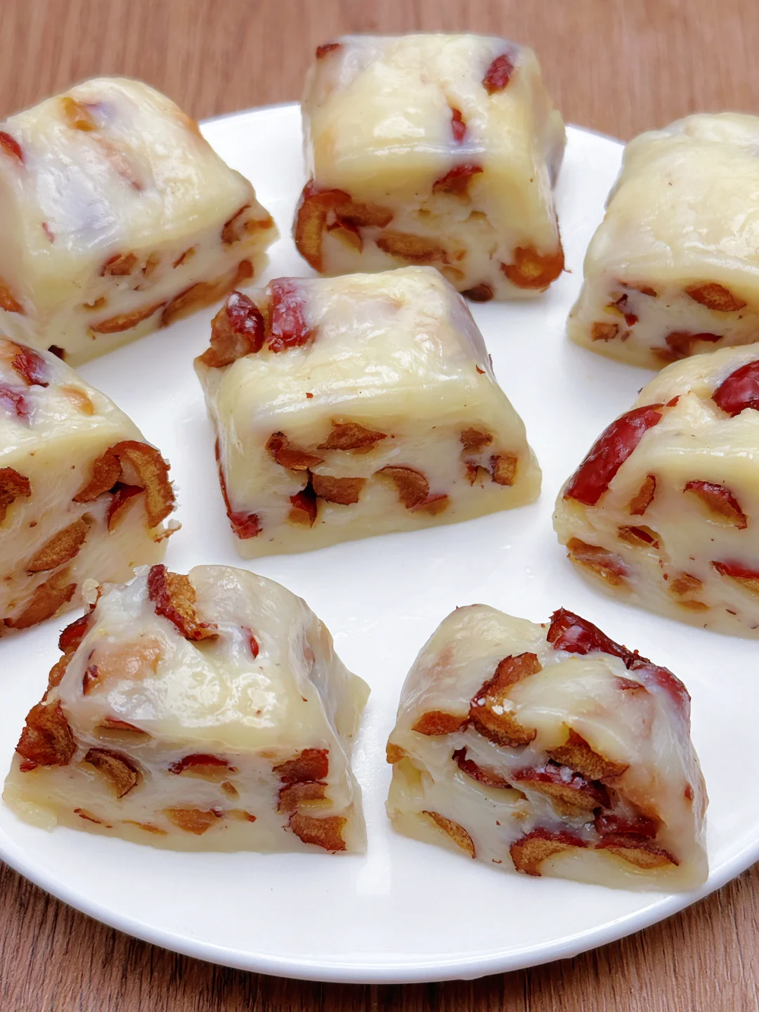 姐妹们,牛奶红枣糯米糕真的泰好吃啦[哭惹R][哭惹R][哭惹R]全都是常见的食材,没尝试之前以为味道就一般,试过之后真的有被惊艳到了[哇R][哇R][哇R]拒绝不了这种Q弹的糯米混着浓浓的奶香的东西,红枣的甜味醇而不腻,而且自己做的真材实料比外面买的要好吃太多,姐妹们快去试试~ 🥗食材:糯米粉、牛奶、红枣 🥘做法:如图所示哦~ 当零食或者早餐都是不错的,姐妹们牛奶一定要少量多次倒哟,不要弄太湿了,不然蒸出来会塌不好看,吃还是好吃的[萌萌哒R]