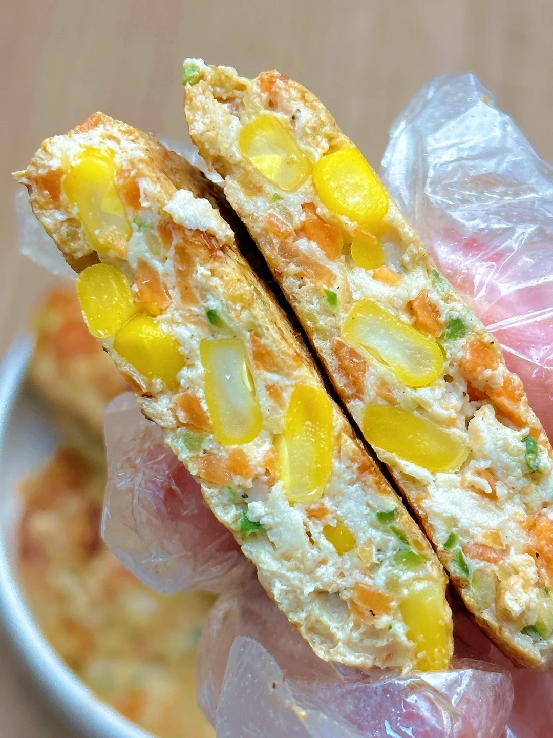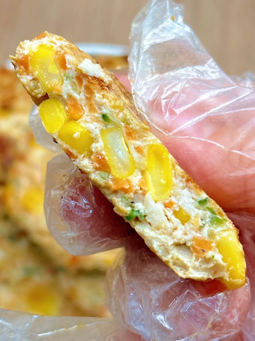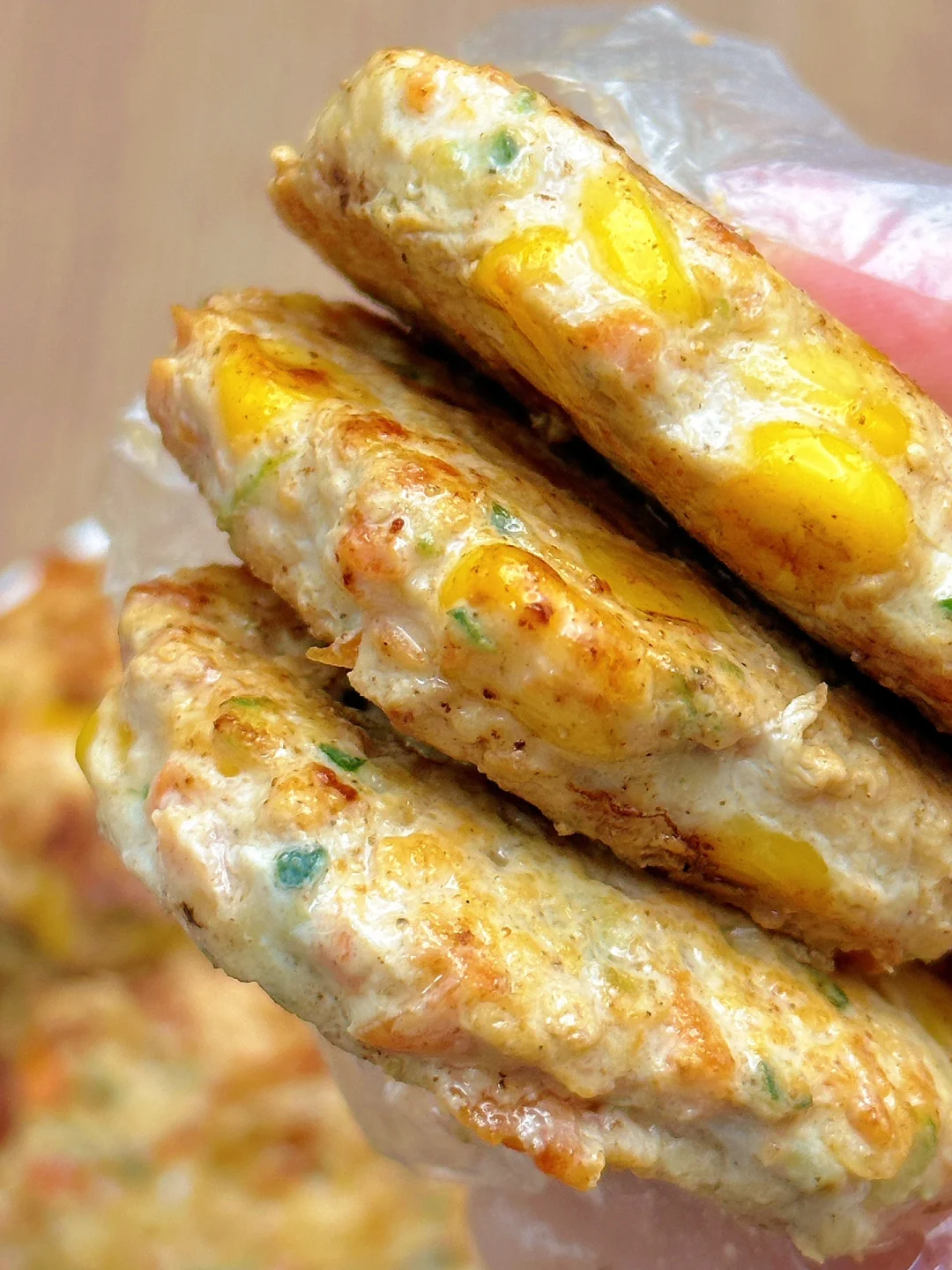 🥗食材:鸡胸肉、胡萝卜、青瓜、玉米粒(做了12个饼)