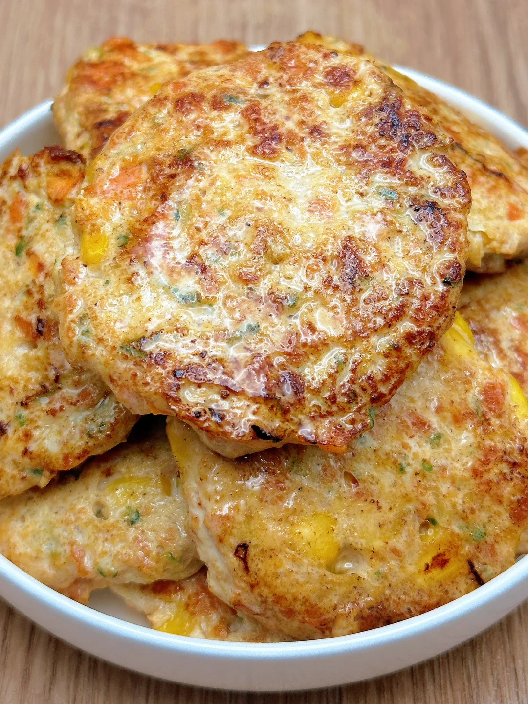 要说掉称还得是吃鸡胸肉!今天就给家人们分享一道无面粉低卡鸡胸肉饼🫓,一个饼才30多大卡,加了胡萝卜、青瓜、玉米粒真的太好吃了,又嫩又多汁,鸡胸肉一点都不柴,而且还点甜甜的,巨巨巨好吃😋,连吃两三个就满满的饱腹感,减脂期的家人们可以放心炫,一定要试试哟!