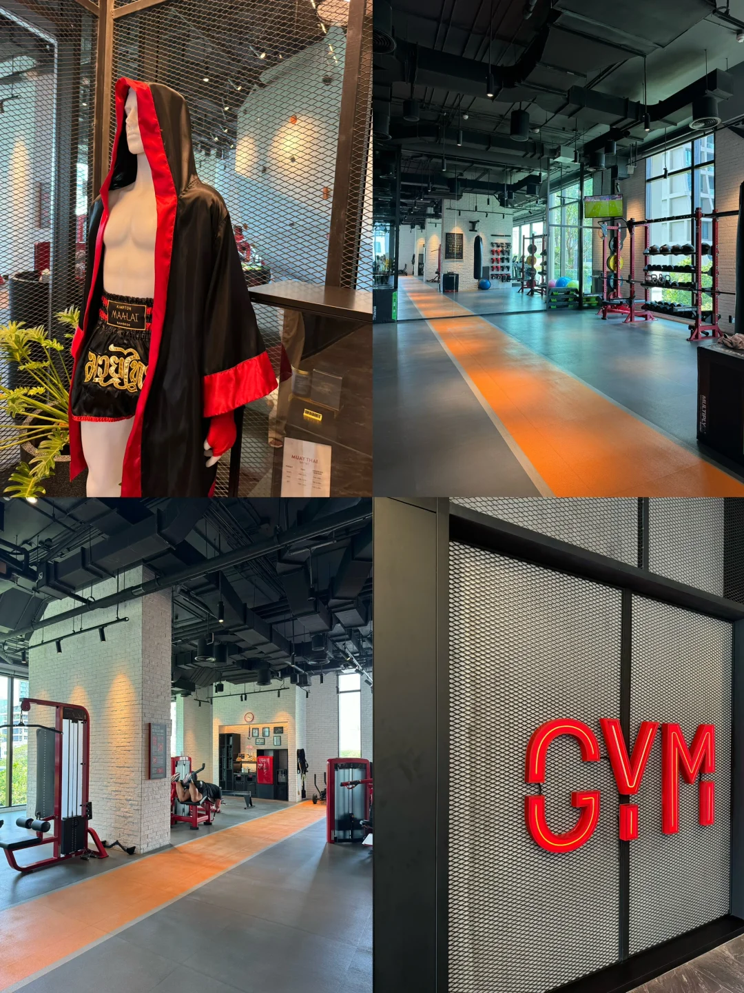 2️⃣泳池边的健身房超级大!还有教泰拳的哦,器械这么全的Gym很少见