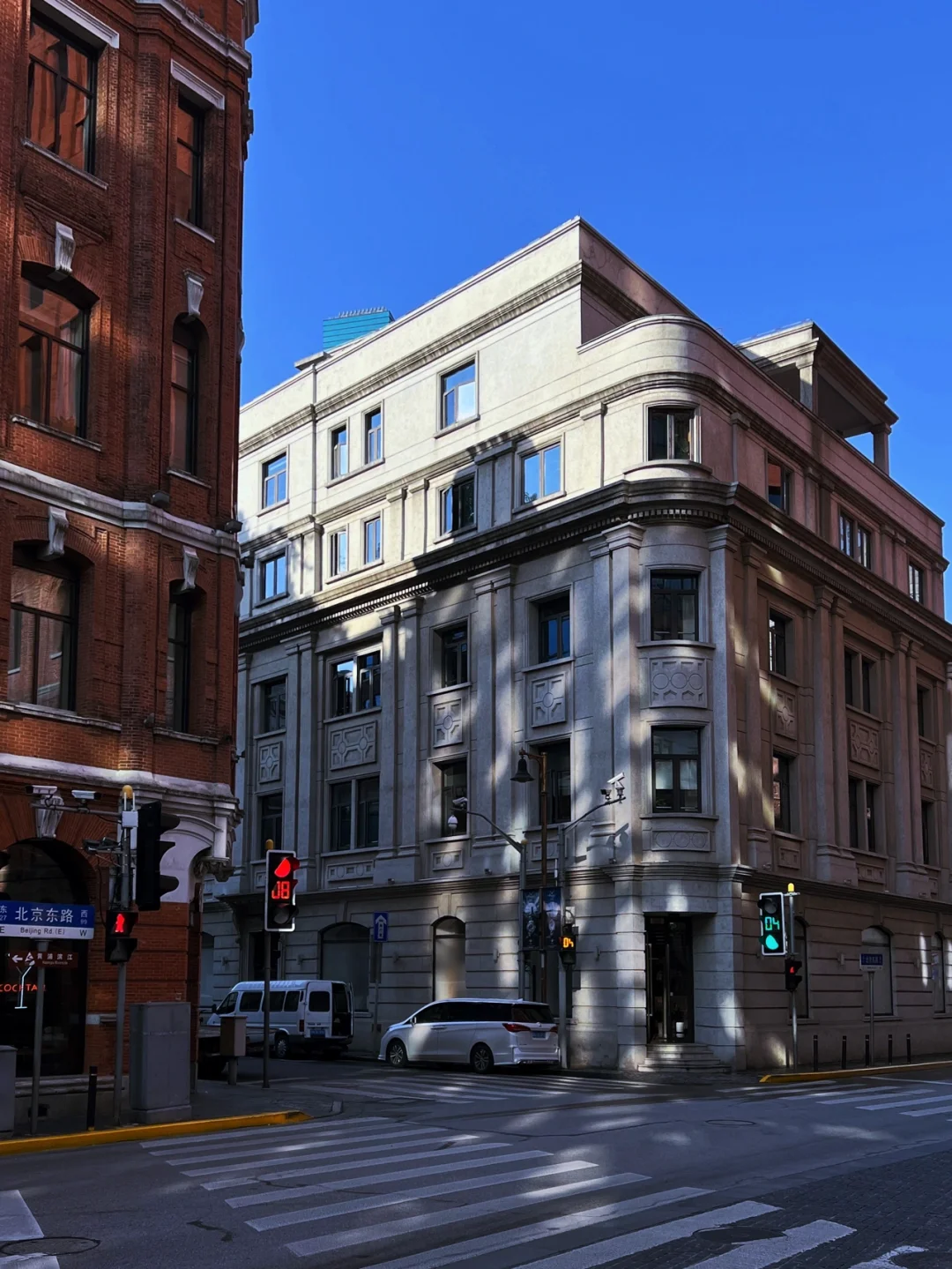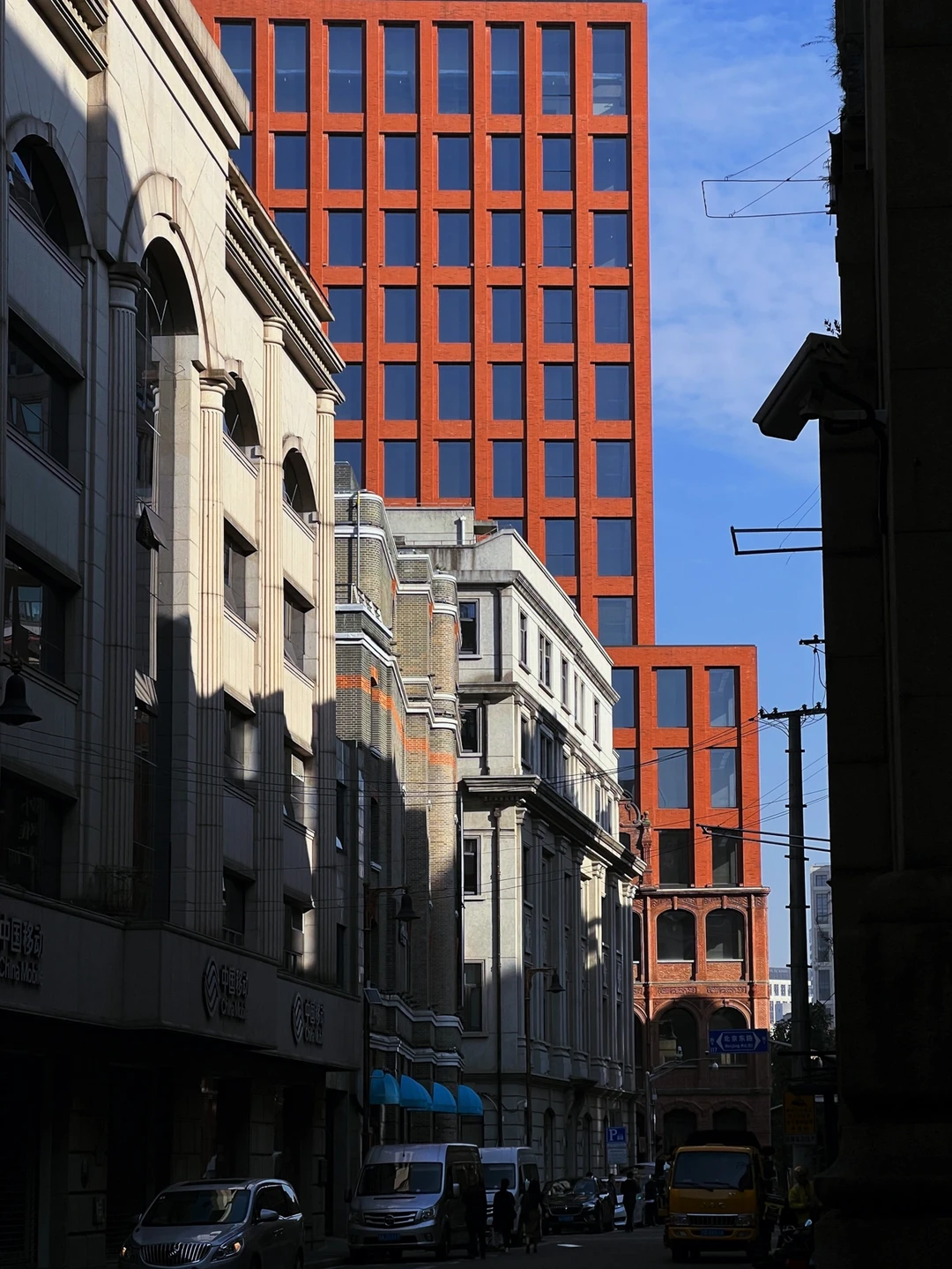 周末来上海出差,临走前一晚才拿到新手机,足足等了一个月。趁着工作间隙用iphone13pro随手拍了一些建筑风景照。 - 作为摄影师我还是比较注重手机的摄像头,13pro最喜欢就是3倍的长焦镜头,拍城市建筑之类特别有感觉。在白天光线好的状况下照片质感很好,但是在夜晚拍夜景就会显得锐化过度,需要开启raw格式来手动改善。 - 对于拍照这件事,其实就是越轻便越快捷越好。以至于我带的富士微单就没打开过。手机能搞定的事儿,真的不想再麻烦相机。 - 很幸运,一来上海就放晴暖阳。上海的秋天太美啦!