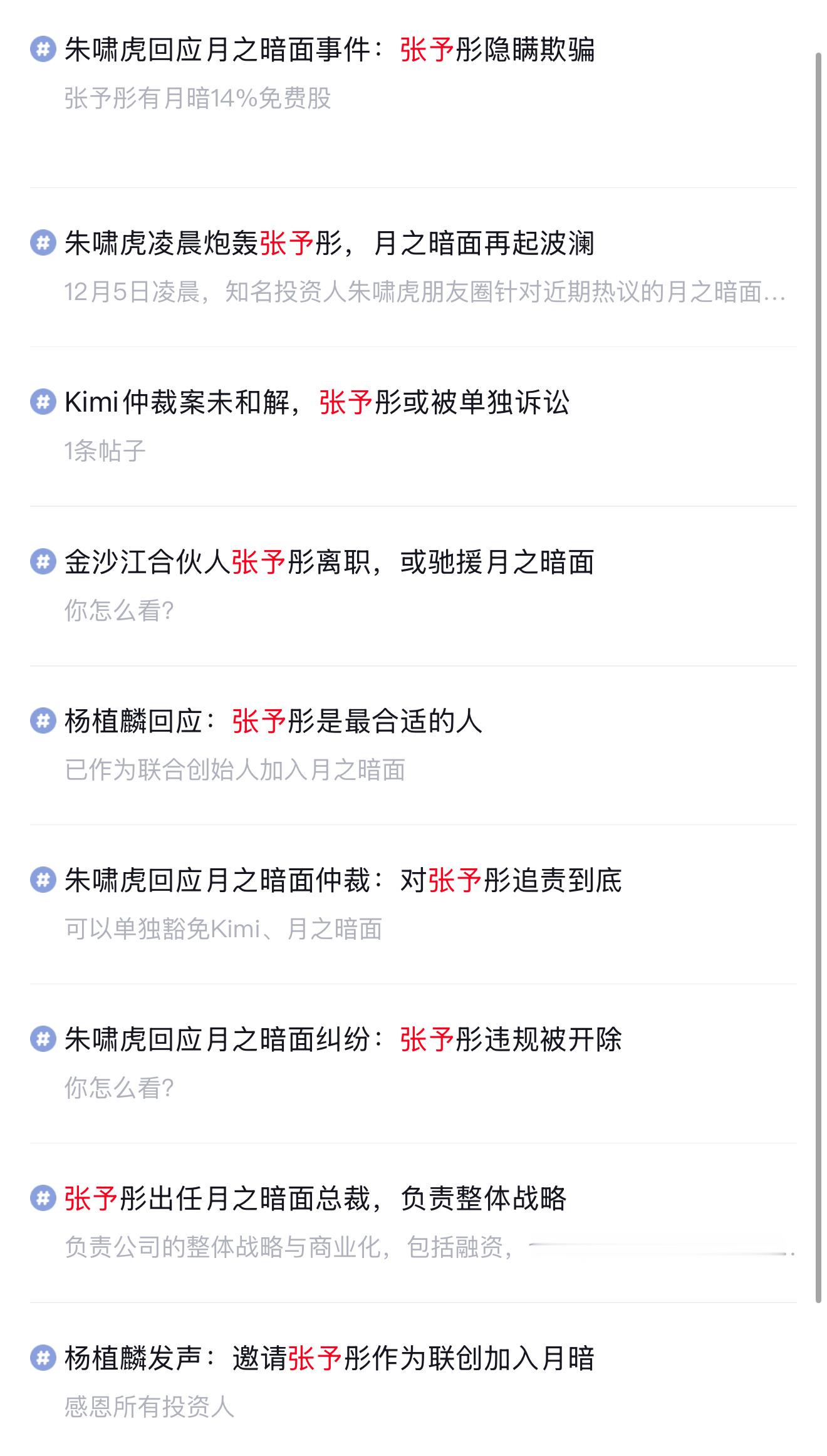 科技先锋官 张予彤出任月之暗面总裁,看来和金沙江的纷争最终还是张予彤赢了啊,不过投资出身的张予彤出任总裁,是月之暗面又缺钱了吗?前段时间不是说刚融了一笔,会不会是因为这个张予彤上位了呢?