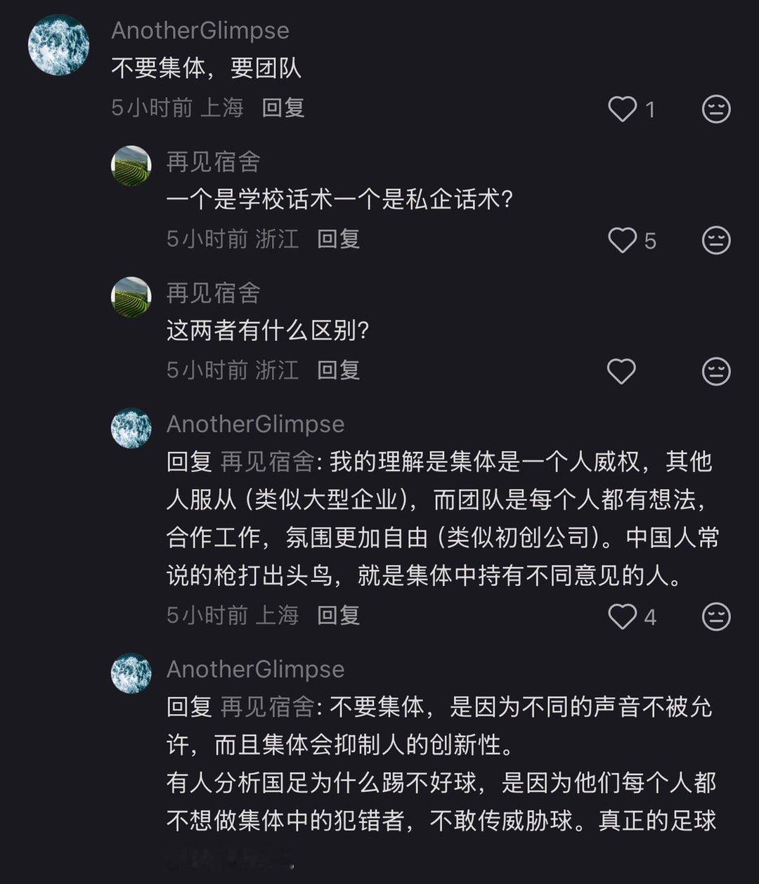 挺同意图二的观点,感觉我们的三大球应该更注重团队协作。集体主义你可以把它当成价值取向和精神内核,团队则是具体的组织形态和协作体系,由有共同目标的个体组成,侧重分工、配合、战术执行等实操层面的协同模式。团队这个概念里,它既有集体主义的利益统一属性,又有明确的分工、清晰的协作流程和个体价值的合理发挥,能在保障集体目标的同时,让每个成员的能力有具体的施展空间,避免了单纯强调集体主义可能带来的个体能动性压抑。