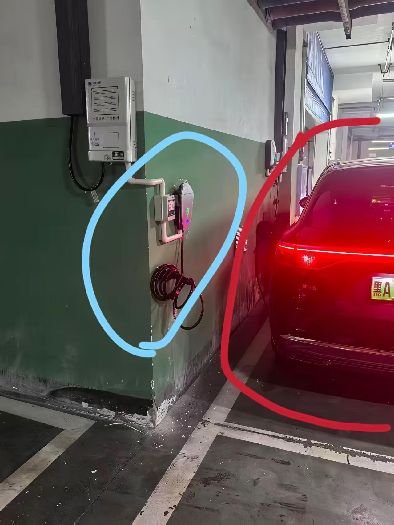 我一哥们被人家欺负了,大家仔细看图,红色的是我哥们的车和车位,但是对方却将他的充电桩安在了我哥们车位旁边的墙上。 我哥们正在和那家伙协商,但对方却认为这里是地下停车场,人家安装的位置也没安装在我哥们的车位上面,人家是安在墙上,而墙是属于公共空间的。 我哥们一时之间也不知道该怎么办,他的这个充电桩确实是放在我哥们旁边的墙上,内心也确实挺膈应的,但对方就是非不离开的话,总不能因为这个去起诉他吧? 他现在最担心的就是如果哪一天他的车子开出去了,对方会不会占用他的车位在这里充电呢?这才是让他最不爽的地方。【来自懂车帝车友圈】