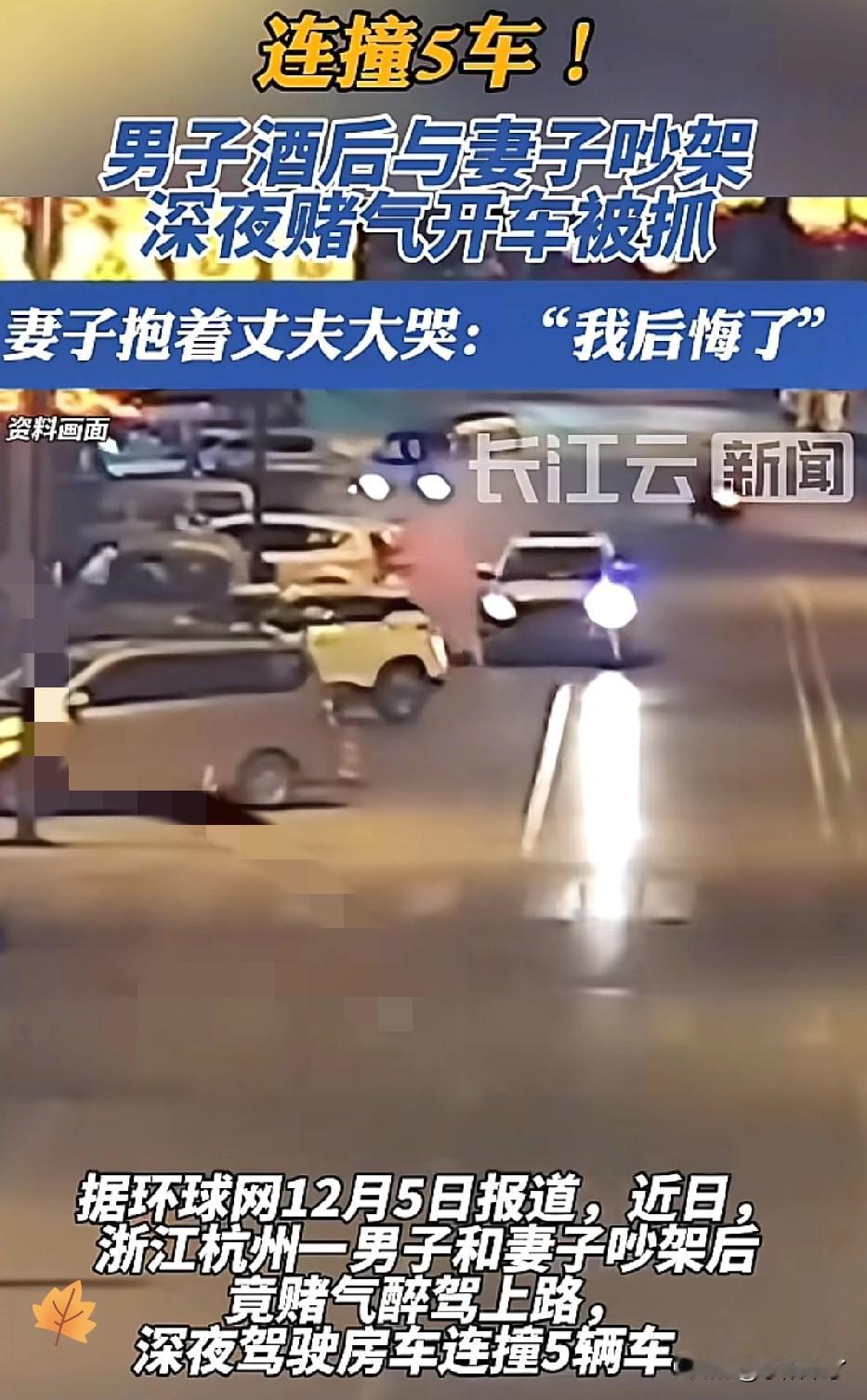 悲剧还是发生了。浙江杭州,男子和妻子、朋友去露营,吃饭喝酒时妻子当着朋友的面不停数落他,两人吵得不可开交 本是夫妻间的小矛盾,他却觉得丢尽了脸面,夜里灌了不少酒,竟不管不顾开着房车下山! 短短几公里,连撞5辆车后还想着逃逸,被交警拦下时,酒精含量飙到160mg/100ml,醉驾刑拘没跑了! 妻子在现场崩溃大哭,一遍遍地忏悔不该当众戳他痛处,可他却硬气地说“不后悔”,满脑子只剩“在朋友面前丢了面子”! 我真的想问问他:用违法犯罪换回来的“面子”,算哪门子体面? 妻子当众数落伴侣,确实伤了夫妻感情,也戳了男人的自尊,但这绝不是醉驾逃逸的借口! 成年人最该有的清醒,就是别让情绪牵着鼻子走,别让酒精冲昏了理智——你一时的赌气,赌上的是自己的人生,更是别人的安危! 真正的体面从不是死撑硬扛,也不是用极端方式争输赢,而是就算被戳痛、被误解,也守住法律的底线,守住对生命的敬畏!