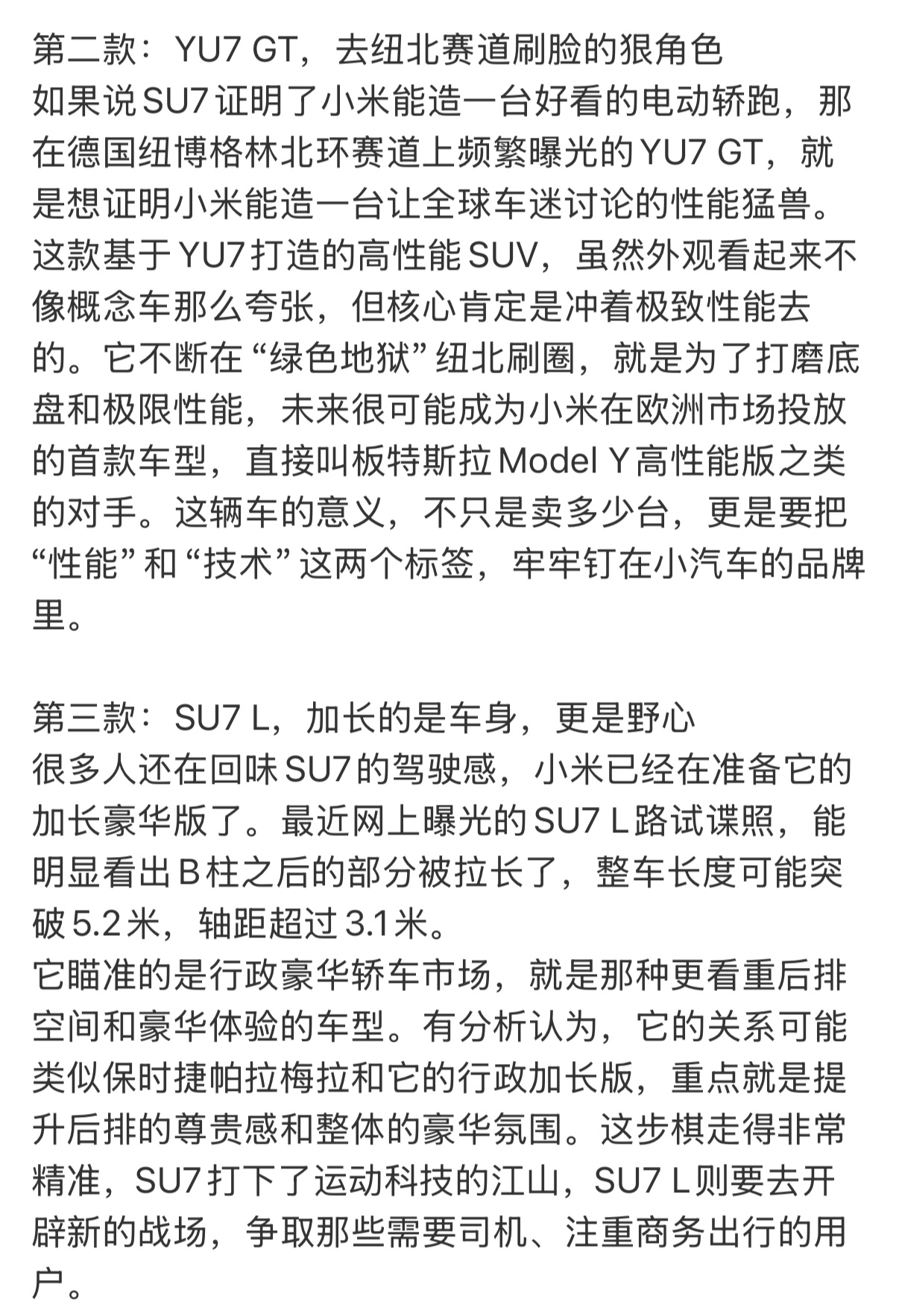 小米三款新车齐曝光我想问的是小米YU7GT和小米SU7Ultra是一个定位的