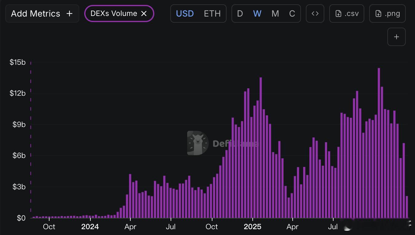 还有一个数据可以反应用户情绪的走向看BASE链上用户的交易数据量总和BASE的玩家忠诚度很好,他们基本上都在base交易25年4月,BASE玩家的情绪降到低谷期当时的周DEXs Volume总计在1.95B现在12月的数据虽然没有去年4月那么难看,但是整体也到了4B并且12月第二周还可能更低所以从散户情绪看,整个12月都是筑底的过程中很难熬,但是在明年流动性回归后市场的反弹力度会很大