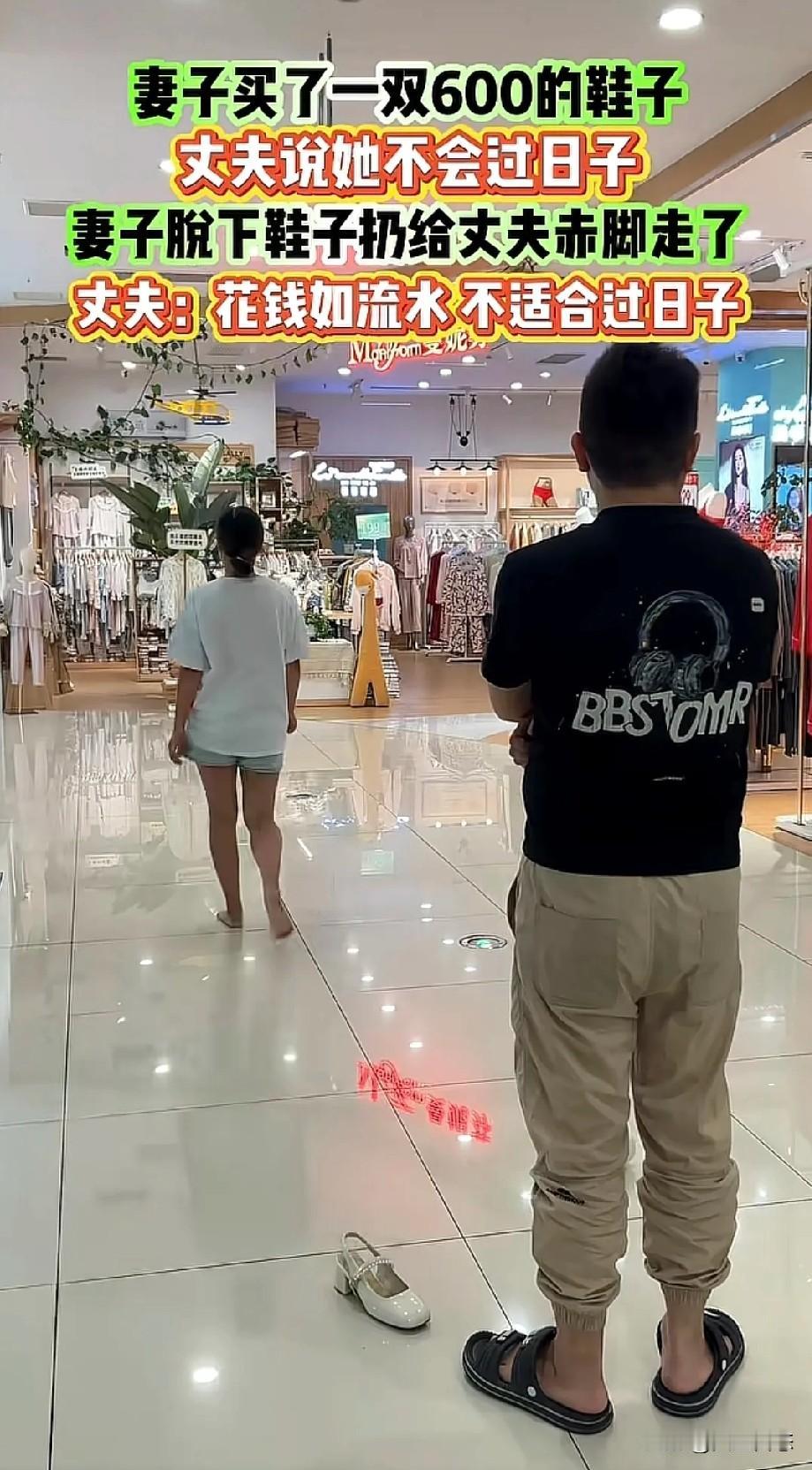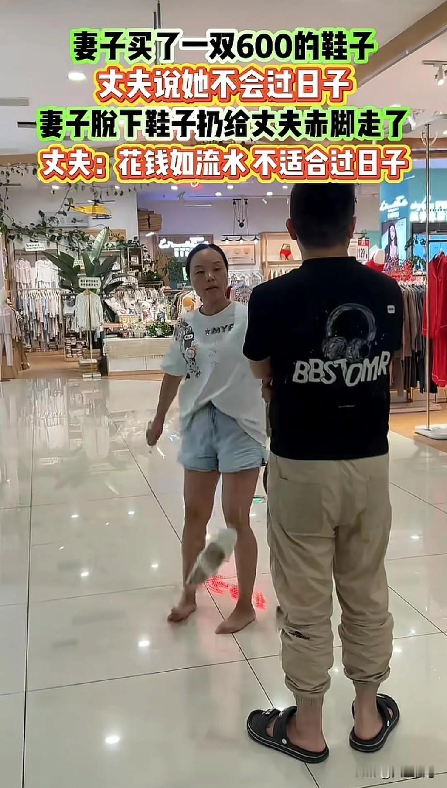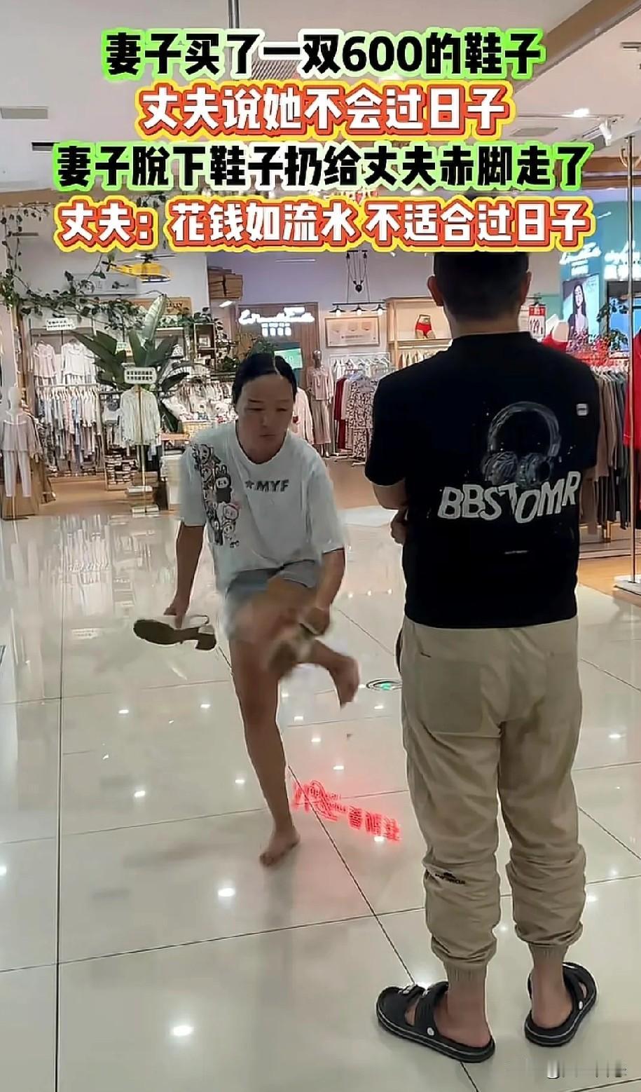 妻子花600元买双鞋被丈夫怒吼:“花钱如流水,不会过日子” 妻子当街脱鞋扔给丈夫:你的态度,比赤脚更让人心寒! 我要是这女的,鞋都不要了,直接打车走。跟这种男人过,真憋屈! 换作是你,你会继续忍让,还是像她一样,宁可赤脚也要转身离开?