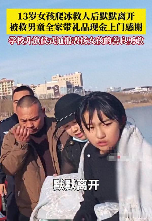 “13岁女孩勇救掉入冰窟的4岁男童”,12月9日报道这个新闻感动全网,可最真实的反应,还是她爸妈那句“心疼”。[黑线] 寒冬腊月,冰窟救人的危险不言而喻,即便成年人也面临巨大风险,然而在宁夏同心县,一名十三岁的初一女生李佳婷,做出了一个冷静又勇敢的决定。 十二月六日,当地人工湖的冰面上,一名四岁男童不慎落水,冰层脆弱,孩子在水中挣扎,岸边母亲焦急哭泣,群众聚集却难以施救,报警,寻找工具的同时,无人敢踏上随时可能碎裂的冰面。 途经此处的李佳婷看到了这一幕,她没有犹豫,向家长示意自己体重较轻,或许可以尝试,接过旁人递来的长管,她俯身趴下,利用全身接触冰面分散压强,向孩子方向匍匐前进,这是一种应对薄冰的常识性方法。 然而在距离孩子数米远处,冰面再次破裂,女孩瞬间落入深水,冷水淹至脖颈,刺骨寒冷中,她始终紧握救援管道,为后续行动争取了关键时间,消防人员迅速赶到,成功将男童救起。 上岸后,李佳婷裹上路人提供的毯子,悄然骑车离开,未留下姓名,回家后,她仅以衣服被溅湿为由解释,未提及冒险经历,直到当晚,父亲看到网络流传的现场视频,班主任也打来电话,事情才得以知晓。 面对父母的询问,她解释了当时的判断,基于体重较轻的考量,提及落水瞬间,只形容了身体的极度寒冷。 见到消防员已展开救援,她便选择了默默离开,父母看着她冻伤的双手,既后怕又骄傲,郑重嘱咐她未来务必先确保自身安全。 获救男童家人携礼物登门致谢,情感真挚,李家收下心意,但婉拒了现金酬谢。男孩父亲表达了无法衡量救命恩情的感激。 学校对李佳婷进行了表彰,颁发证书并启动见义勇为申报程序,她也获得了一笔正能量奖金。 一个十三岁女孩在危急时刻展现的镇定与勇气,确实值得敬佩,她的行动犹如冬日暖阳,传递出质朴的善意。 这一事件也再次凸显了安全施救的重要性,见义勇为的精神值得倡导,但科学的方法与自我保护意识不可或缺,尤其对青少年而言,在帮助他人时,更需首先评估现场风险。 李佳婷父母的复杂心情,代表了许多人的共鸣,我们赞美少年的无畏,更期盼每个孩子都能在安全的前提下健康成长,生命的价值同等珍贵,只有先做好自我防护,才有能力去守护他人。 与生俱来心里的美,刻在骨子里的善良。 “‘这姑娘真是人美心善,英雄出少年啊。’” “‘我13岁的时候可没这胆量和智慧,这孩子沉着冷静,关键还低调,救完人就走了,品德太好了。’” “‘看得我手心直冒汗,这孩子胆子也太大了,万一出点事,两个家庭就都毁了,父母的心疼我太懂了,骄傲是真的,但后怕也是真的。’” “‘表扬肯定要表扬,但安全教育必须跟上,不能让别的孩子看了新闻就盲目模仿。’” “‘见义勇为是美德,但“见义智为”更重要,她趴着过去是对的,说明有安全意识,但冰面情况复杂,还是太危险了。’” “‘那种千钧一发的时刻,能站出来就需要巨大的勇气,我们不能用事后的理性去苛求一个冲上去的孩子,她的本能是善良,这本身就非常珍贵。’” “‘学校和媒体在宣传的时候,一定得把“先保证自身安全”,“呼叫大人帮忙”,“寻找工具”这些要点重点强调,这才是完整的教育。’” “‘当时旁边那么多大人,最后还是让一个孩子先上了,虽然情况危急,但也值得反思。’” “‘冰面救援是专业活,一般人真不敢乱上,万一一起掉下去更麻烦,大人报警、找工具也是在做正确的事。’” “‘奖金和荣誉该给,这是她应得的,也是对社会正能量的鼓励。’” “‘这家人有格局,有情有义也有原则。’” 如果您是当时的现场路人,在自身不具备专业冰面救援技能的情况下,您认为最应该做、也最能够做到的几件事是什么? 信源:光明网