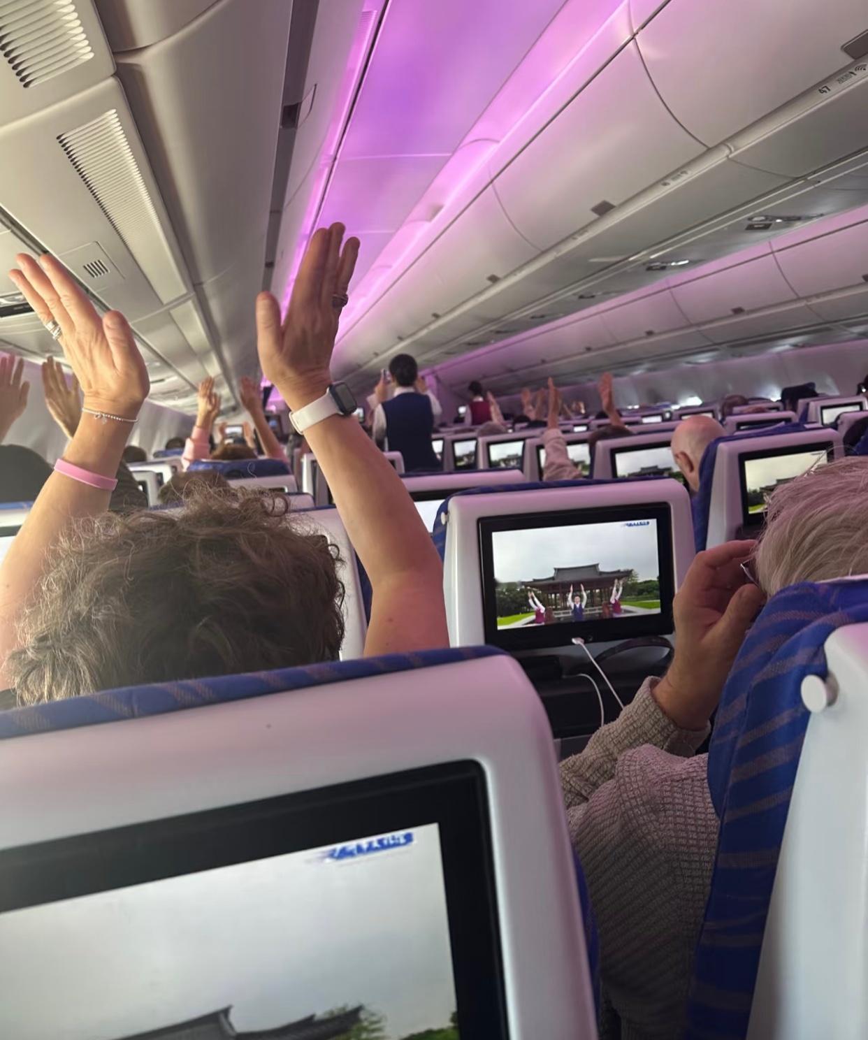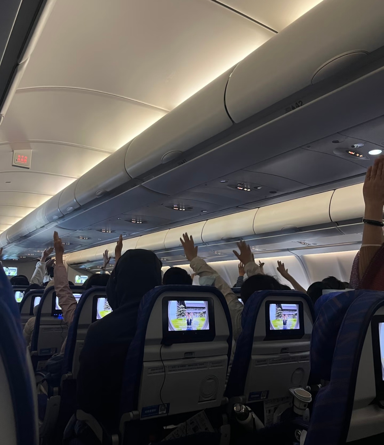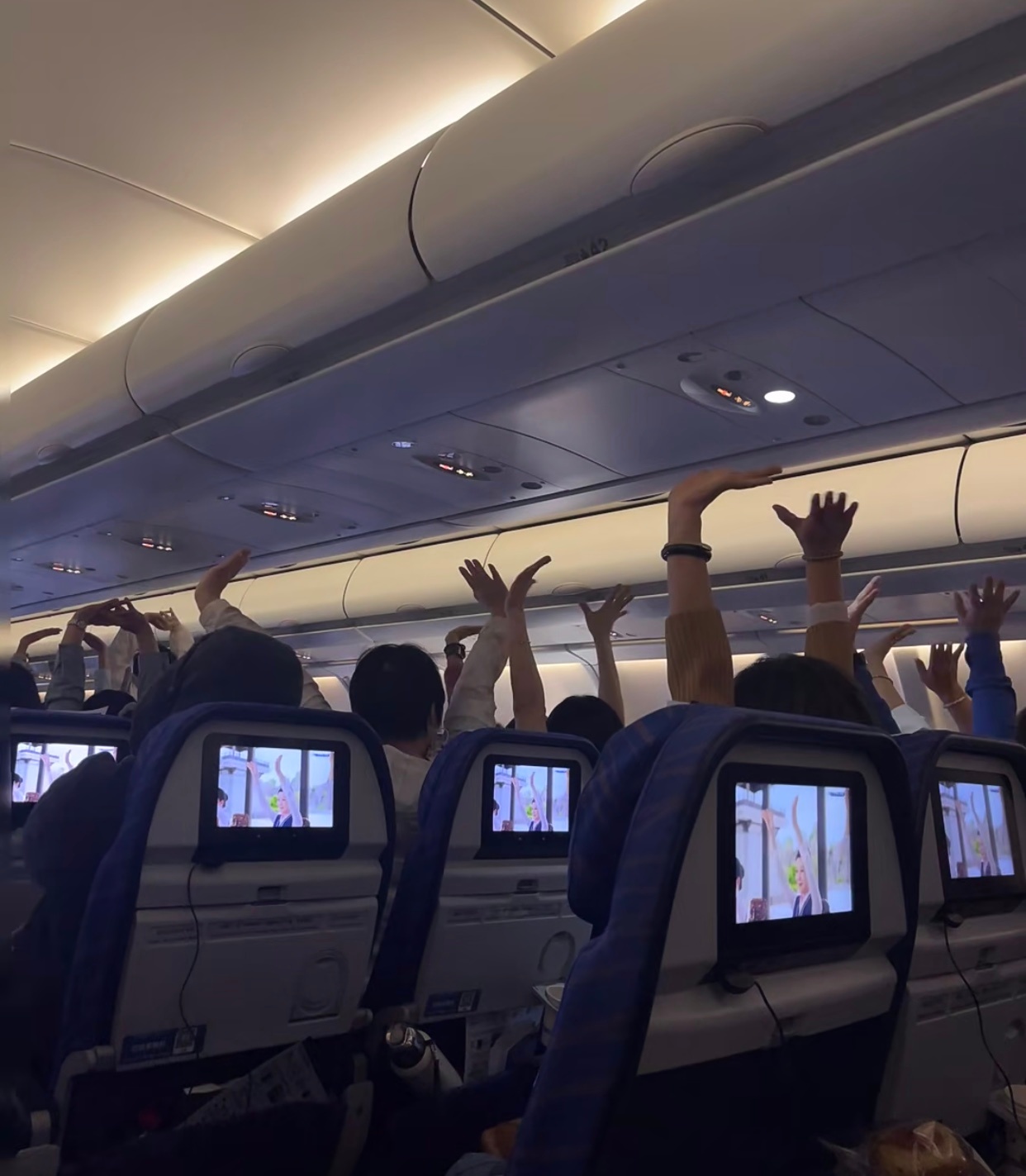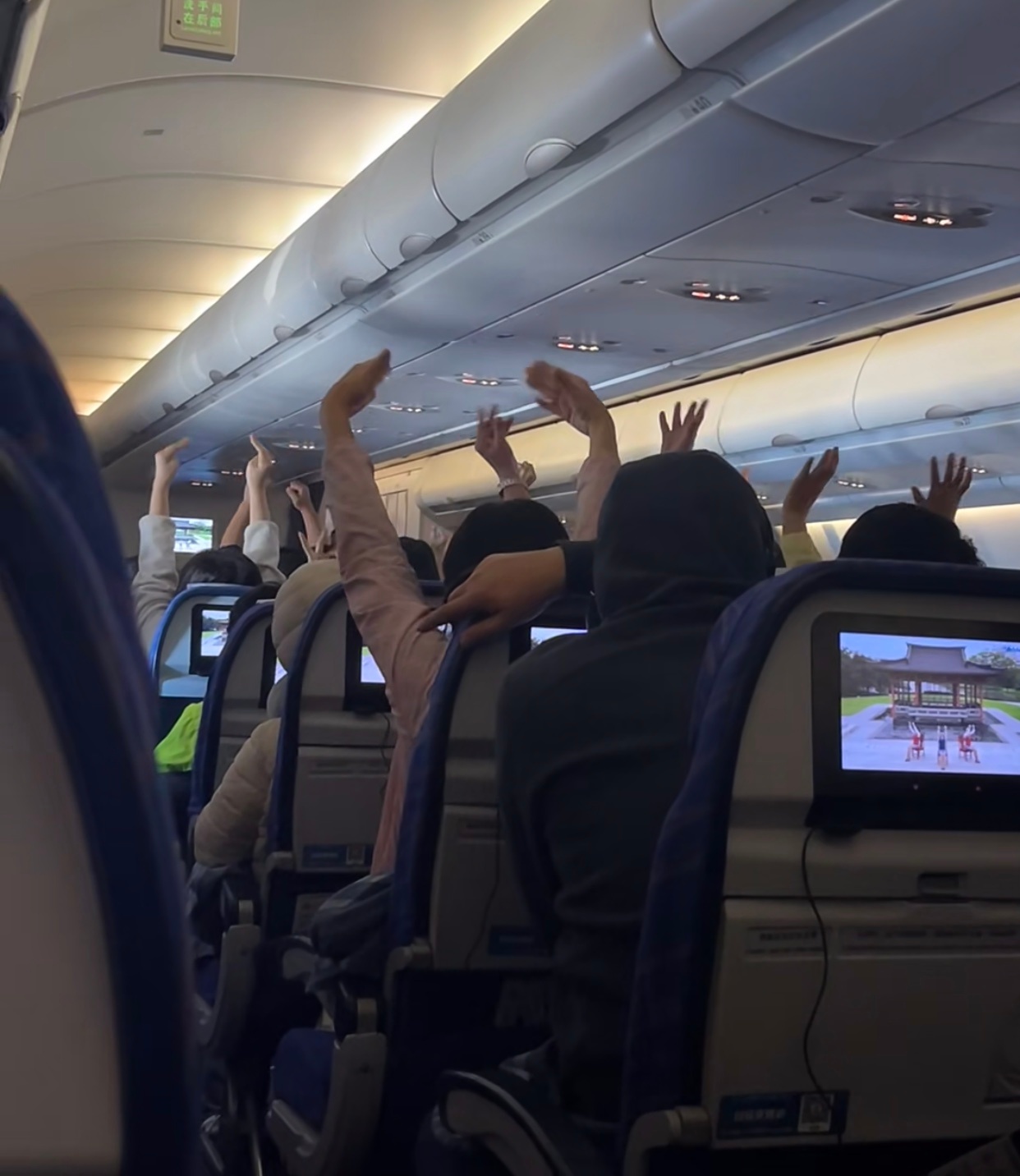 健身人就是飞机上也得运动在飞机上睡的迷迷糊糊一睁眼发现空乘在带着大家做八段锦自己一个人在机舱里做会觉得不好意思大家一起做的话莫名有一种怪异的喜悦get了在天上运动的成就✅全民运动flag大会冬天就要这样动