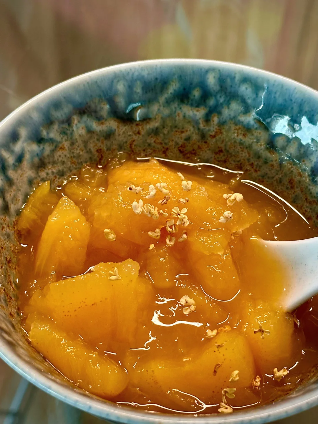 搭配黄片糖很不错,我还推荐撒一点桂花,一碗金灿灿亮晶晶,香香甜甜冬天吃一碗很幸福~